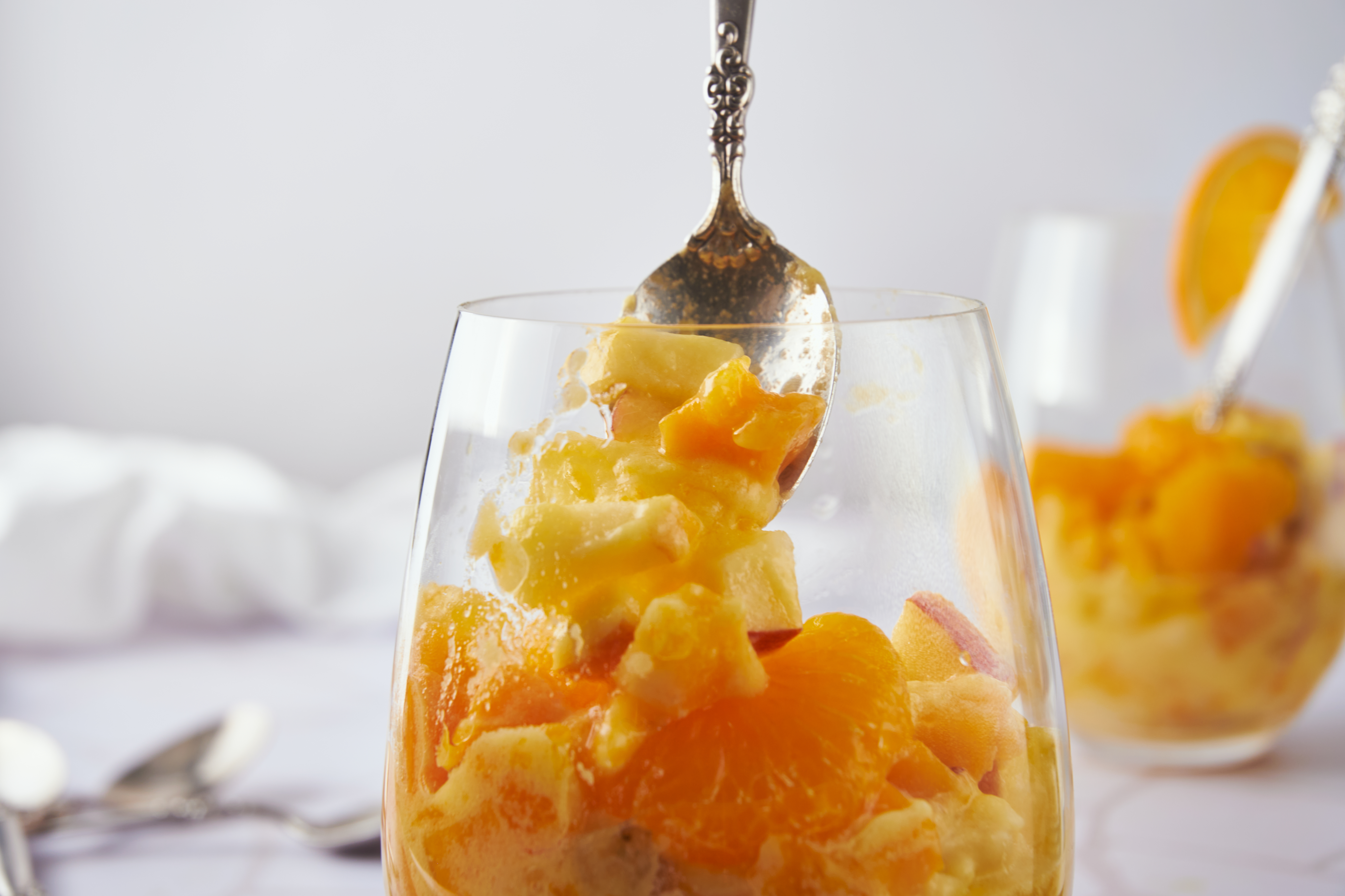 Why yes, it is quite heavenly! Angel Fruit Salad mixes up some of summer's favorite fruits, including tropical pineapple, creamy banana, and floral peaches, and lets them take a swim in a tangy, zesty, bright, and creamy orange pudding! It's luxurious and refreshing, perfect for beating the heat! Bring a little divine decadence to your taste buds with this Angel Fruit Salad!