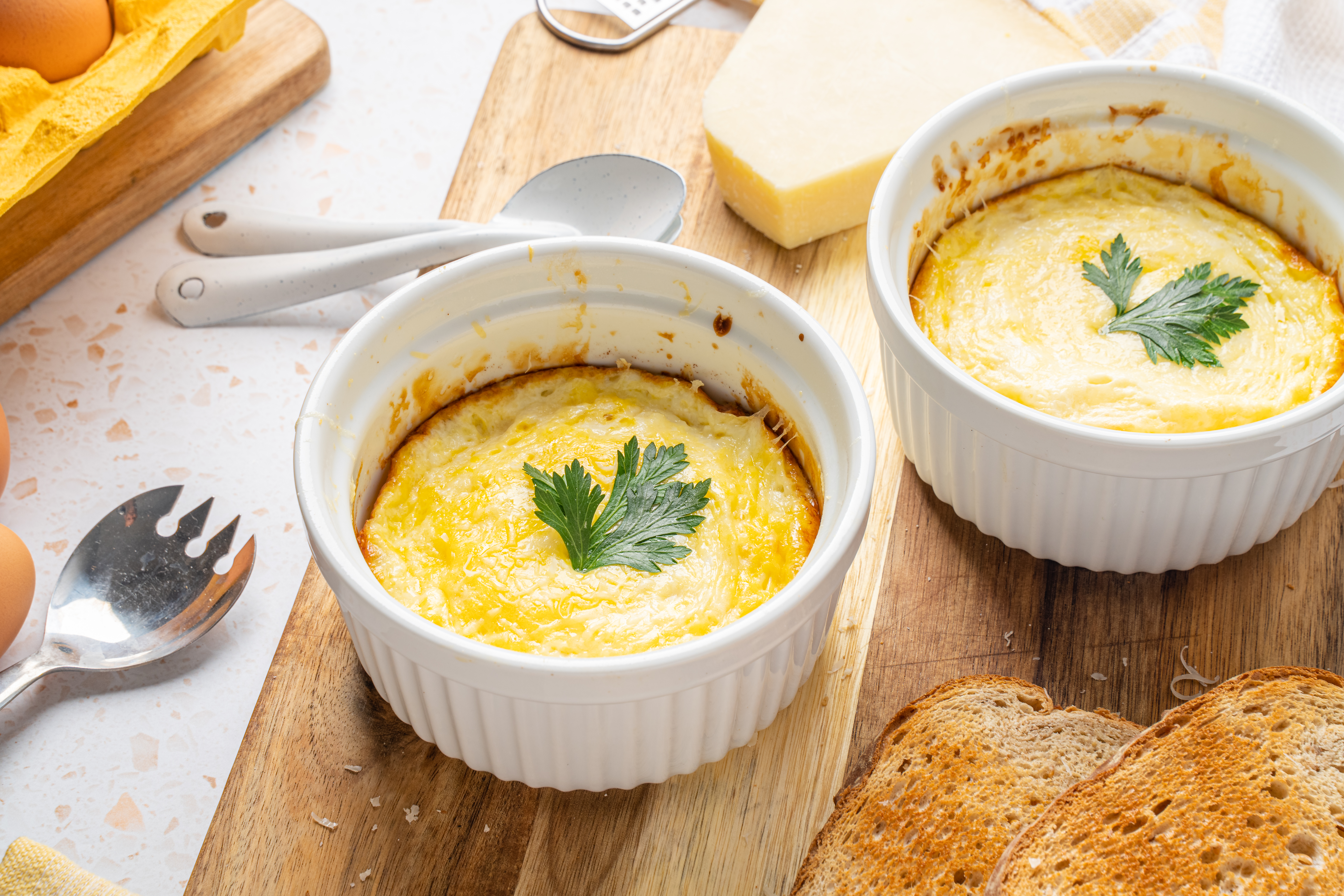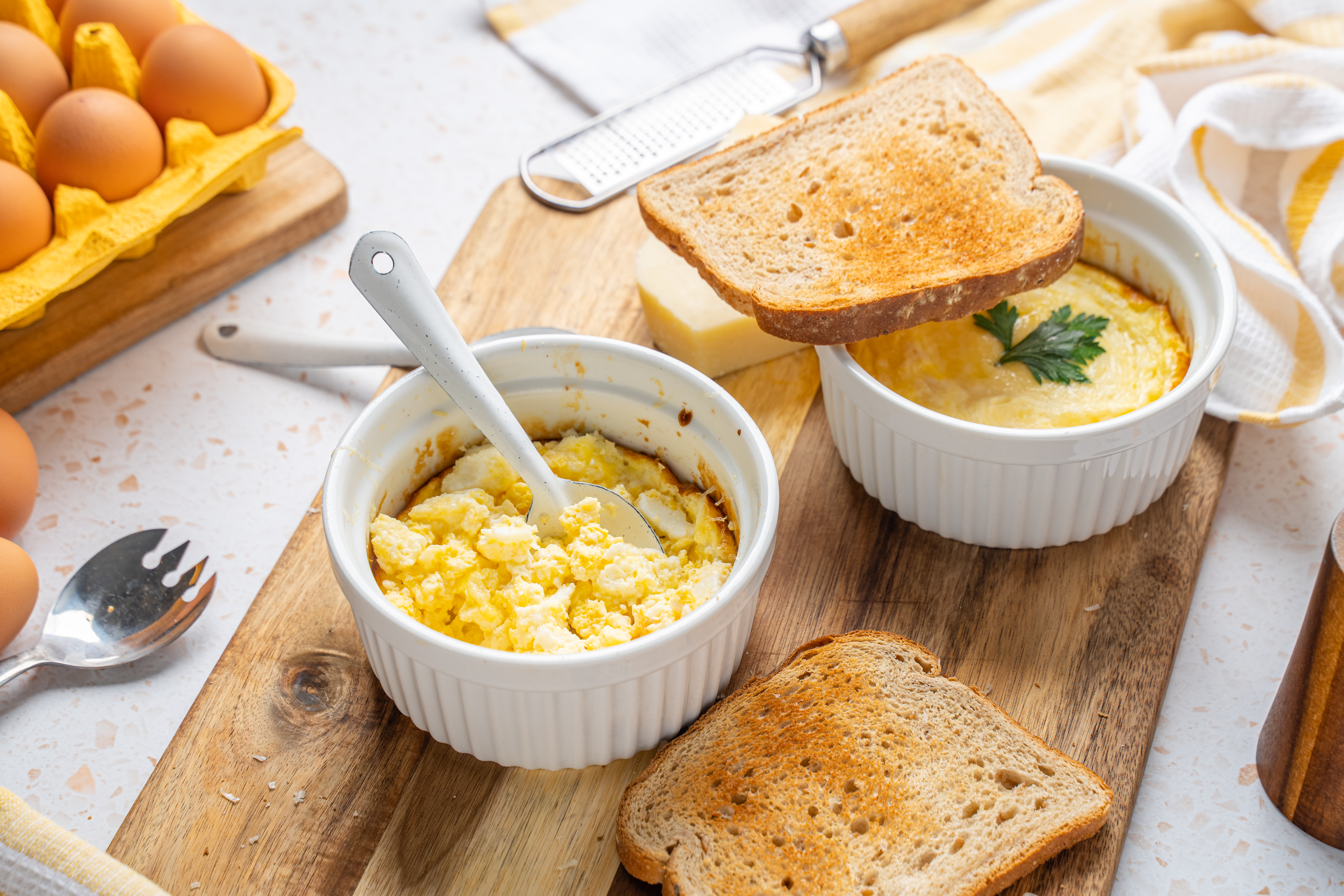 Scramble up your go-to morning eggs with these Baked Parmesan Eggs! Ditch the frying pan and swap it out for some ramekins to create a fancier vibe for your sunrise feast. Your beloved eggs come out loaded with flavor and cheesy goodness that take less than 15 minutes total to whip up. So, start your day off sunny-side up with these Baked Parmesan Eggs! You'll be beaming with joy!