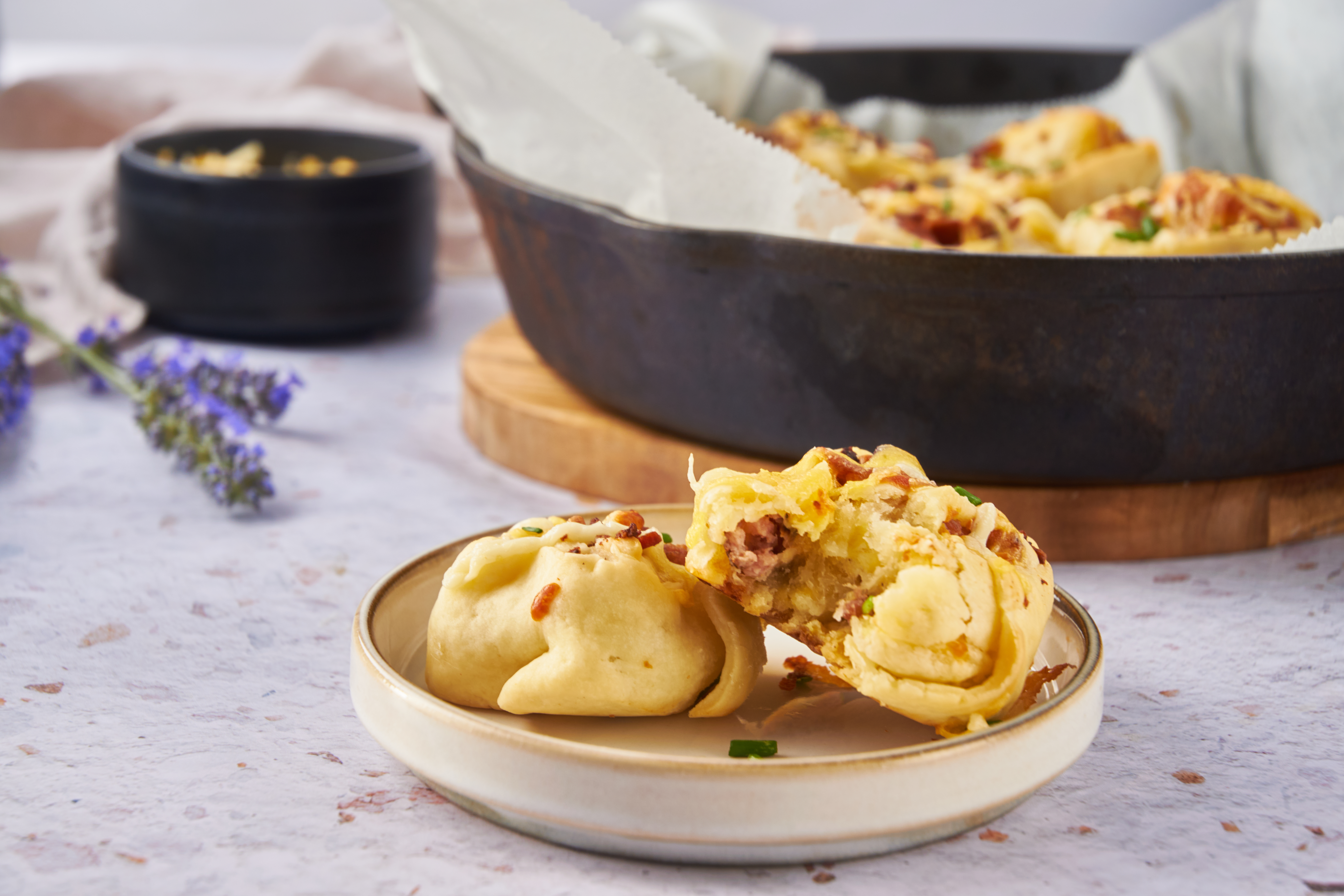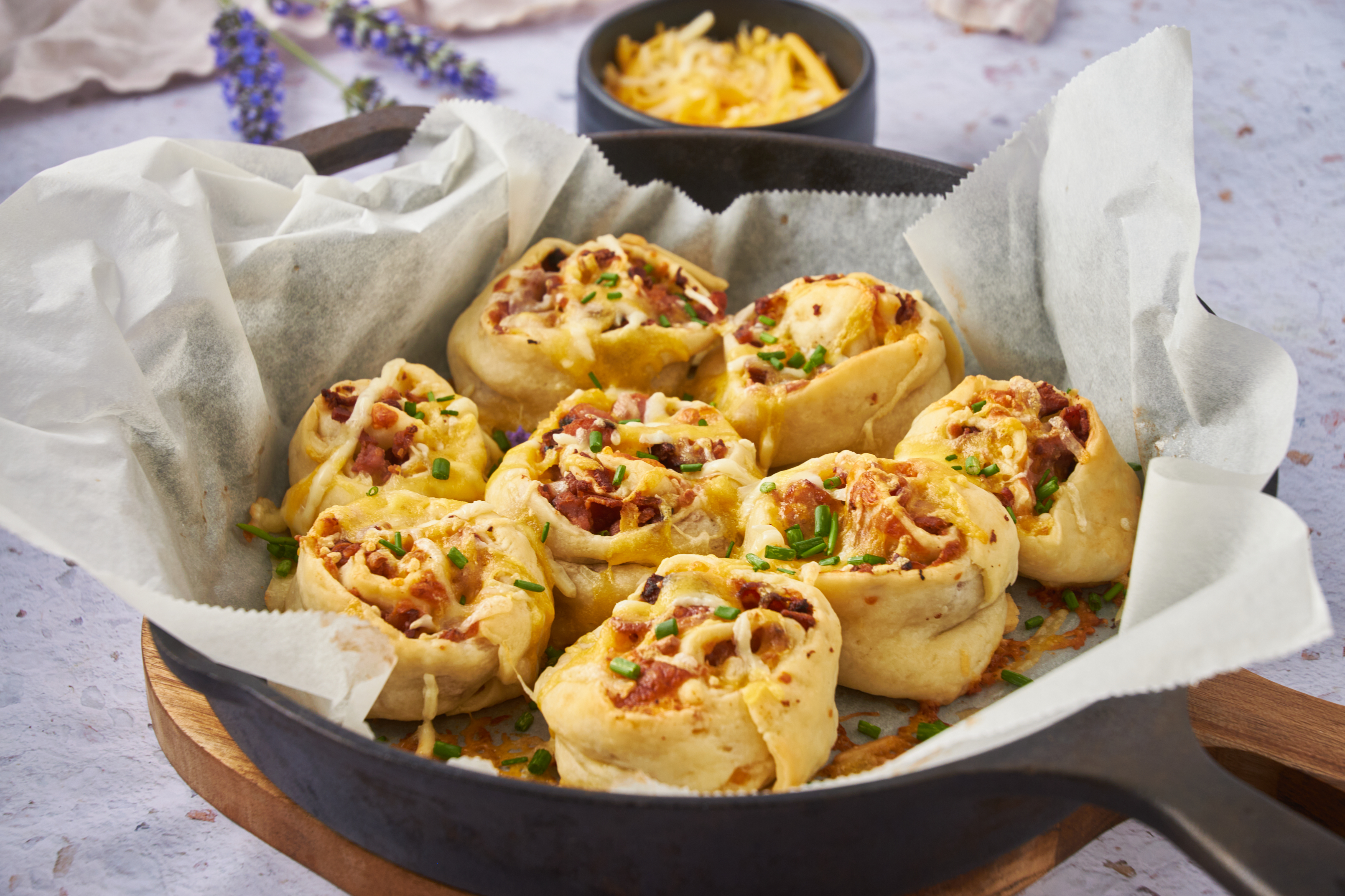 Roll out the best part of your day with a new breakfast treat that you will have on repeat! Our Breakfast Rolls combine all of the flavors your morning-self loves! They're comprised of homemade bread rolled-up with melted butter, fluffy scrambled eggs, hearty bacon, spicy breakfast sausage, and melted cheese to create these little, amazing, handheld morsels of joy. Your family and friends will grow to love Breakfast Rolls so much, they're sure to be a little less grumpy whenever they see them on your breakfast table. So, let the morning alarms ring out! There's a new high-roller in the breakfast game, and you are going to love it!