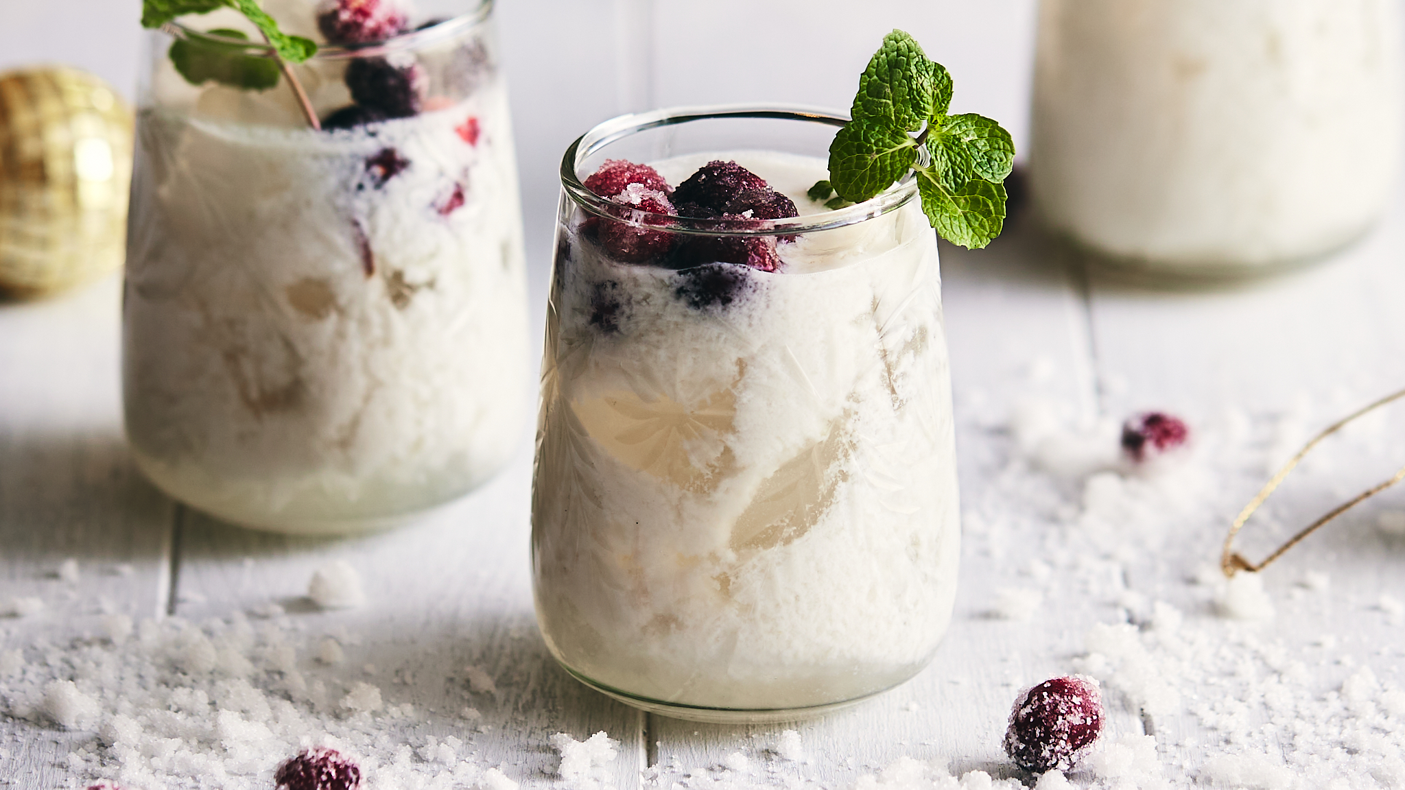 Step 12 -Serve the margarita garnished with the sugared cranberries and the mint.