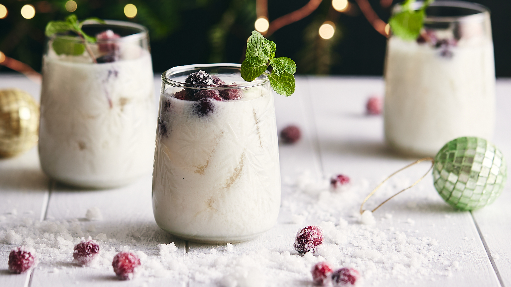The spirits are always festive and bright when you have a Christmas Margarita in hand! While you're rockin' around the tree, make sure you have a tall glass of this sweet, citrusy, slightly creamy sipper dancing along with you to ensure the good times are brought. It's white-as-snow appearance and the rosy red sugared cranberries sprinkled on top add a merry twist that just makes everything that much jollier. Cheers to this Christmas Margarita... making the best moments even sweeter!