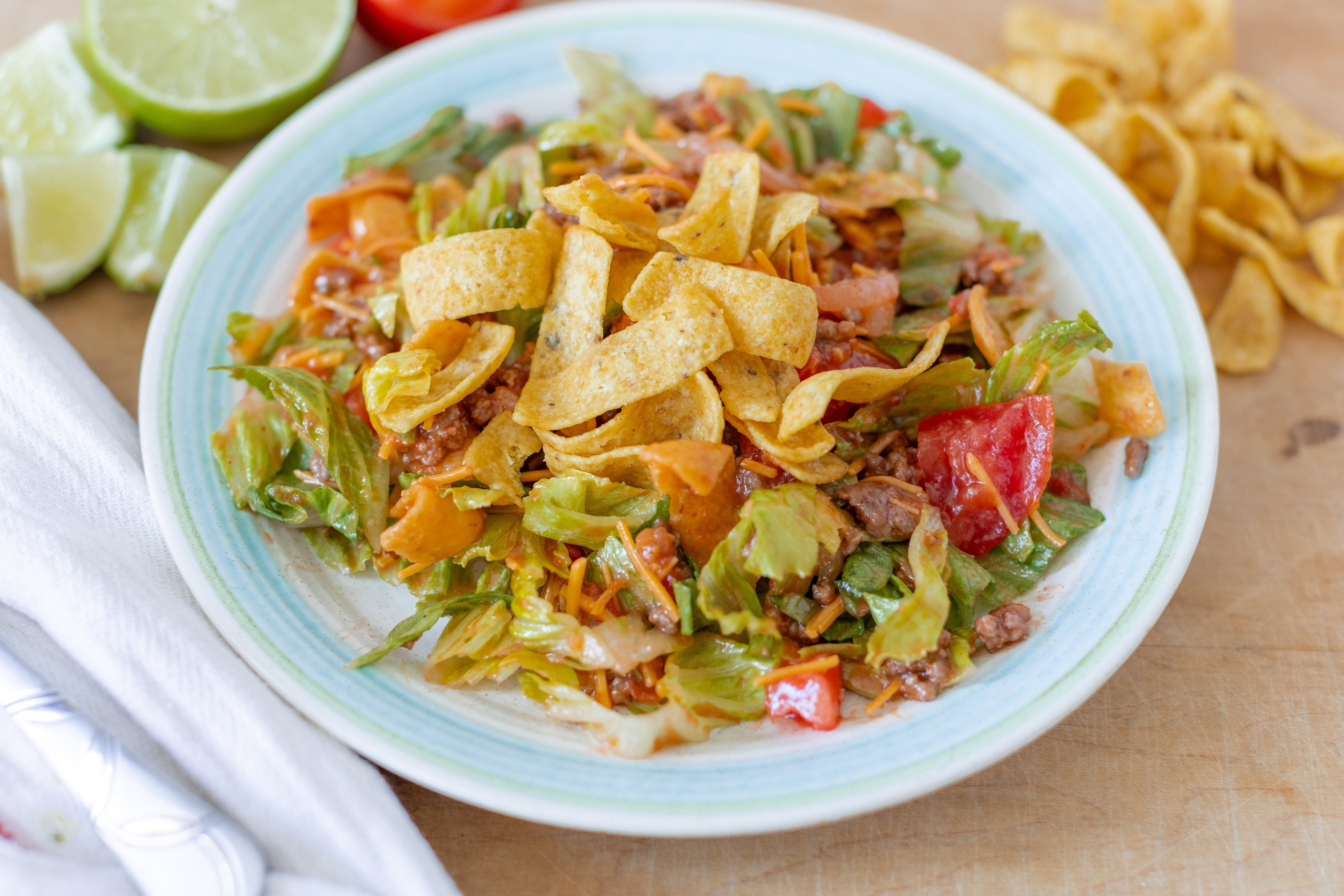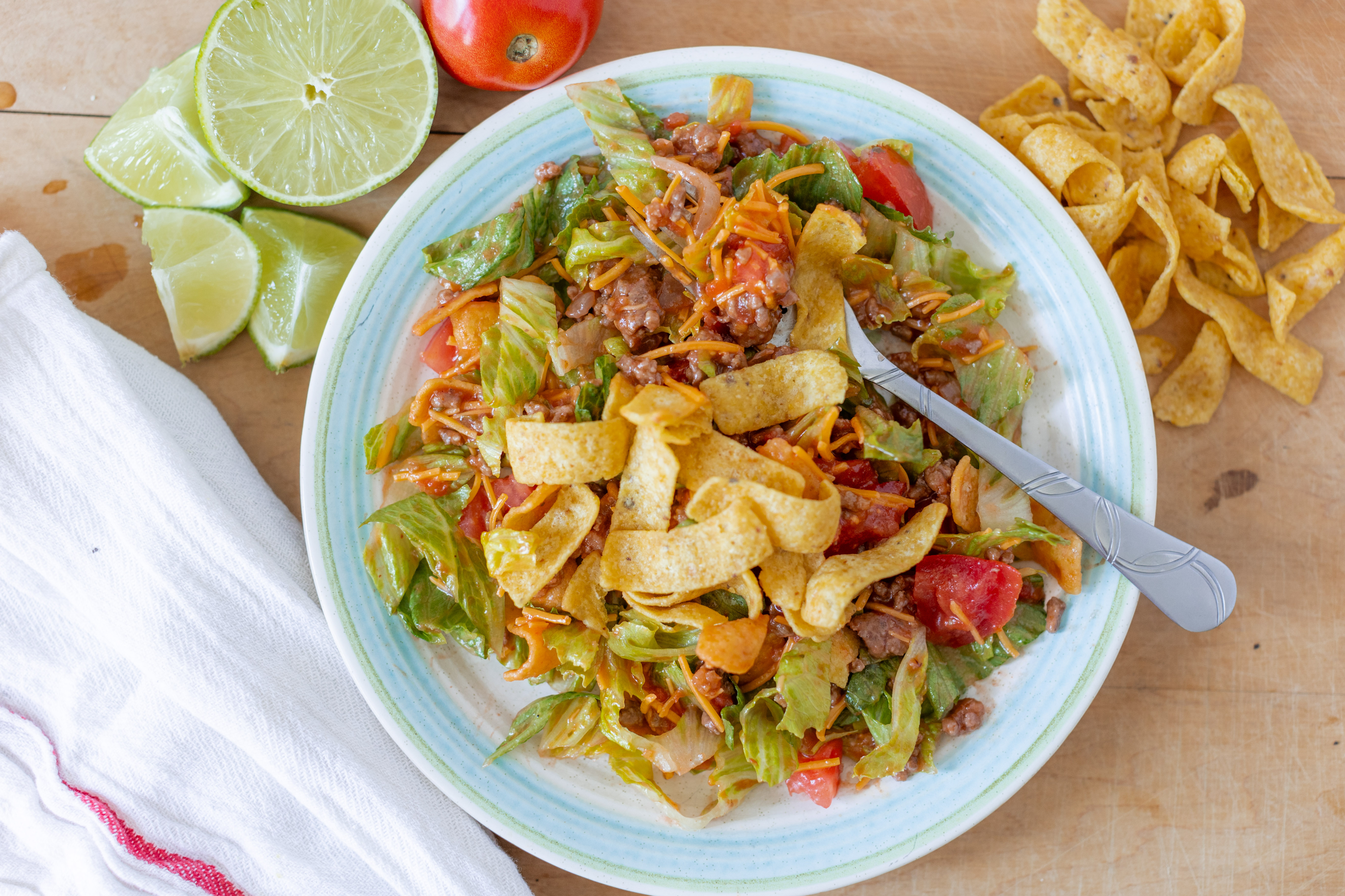 If you've run out of tortillas, but still have all the taco toppings, Corn Chip Salad is here for the rescue! Grab a big bowl, add some fresh lettuce and then pile it up! Throw on the slightly spicy taco meat, the sweet corn, the juicy tomatoes, the salty cheese, and some sweet Catalina dressing and give it a toss. Serve it up with a sprinkle of crunchy corn chips and you've created a meal better than you could have ever imagined. So, don't sweat it! Your tortilla tragedy was reconciled (dare we say, made even better?!) with this Corn Chip Salad! Yahoo!
