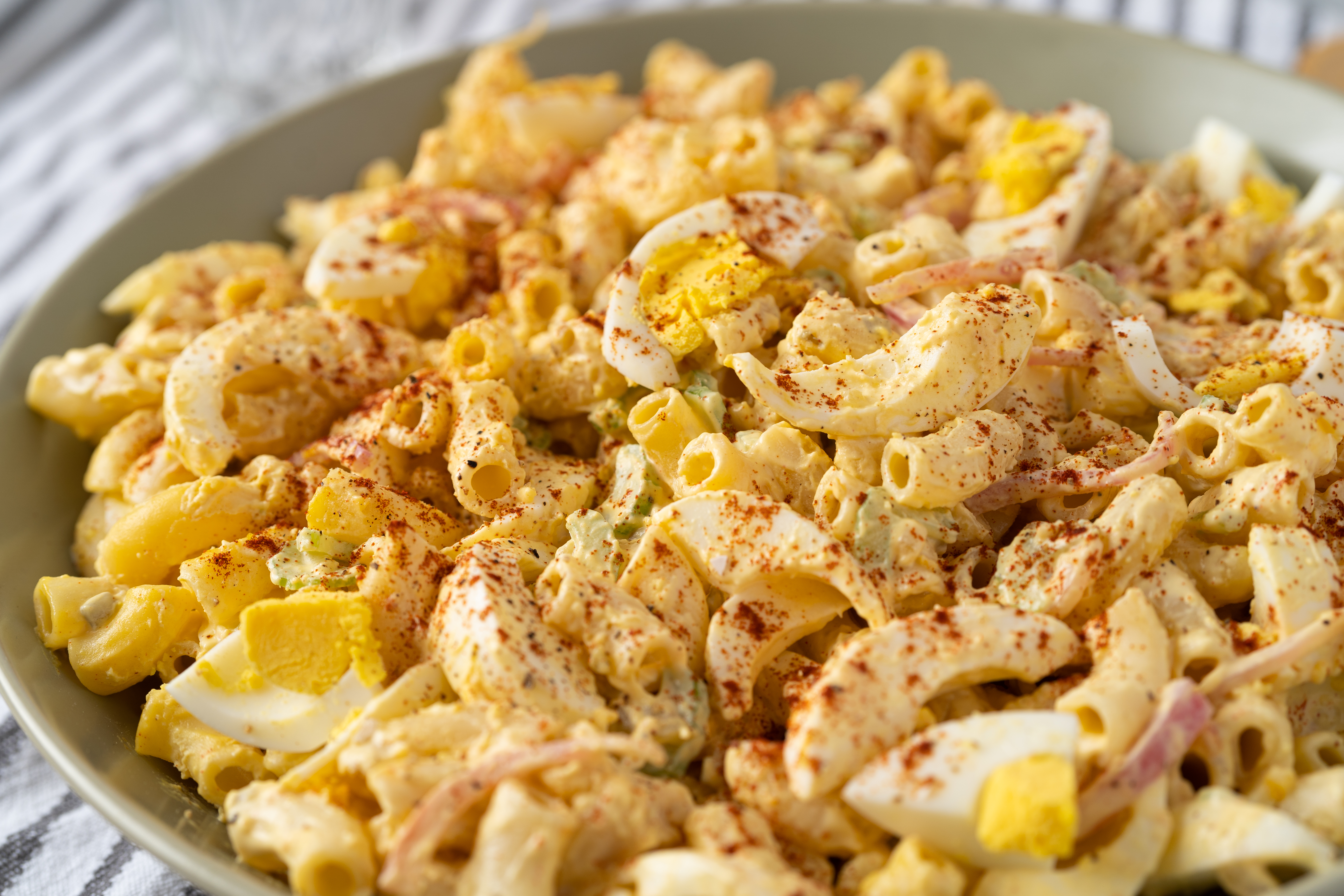 What's better than cookout sides?! Well, truly, it's hard to say. But listen... we might just be on to something. We've learned that if you're daring enough to combine your favorite cookout sides together, yep, that's when things get really interesting. Who would have thought?! We did that with Deviled Egg Macaroni Salad and get ready, because your tastebuds' mind is about to be confused in the best way. With this combo of classics, you get to experience the creaminess and bounciness of your beloved macaroni salad all swirled together with the tangy and smooth taste of some deviled eggs. It might sound a little strange at first, but once you plop some on your plastic plate and dig in, you'll understand. Wash it down with a nice cold glass of lemonade and watch Deviled Egg Macaroni Salad become a new staple in your summer spread!