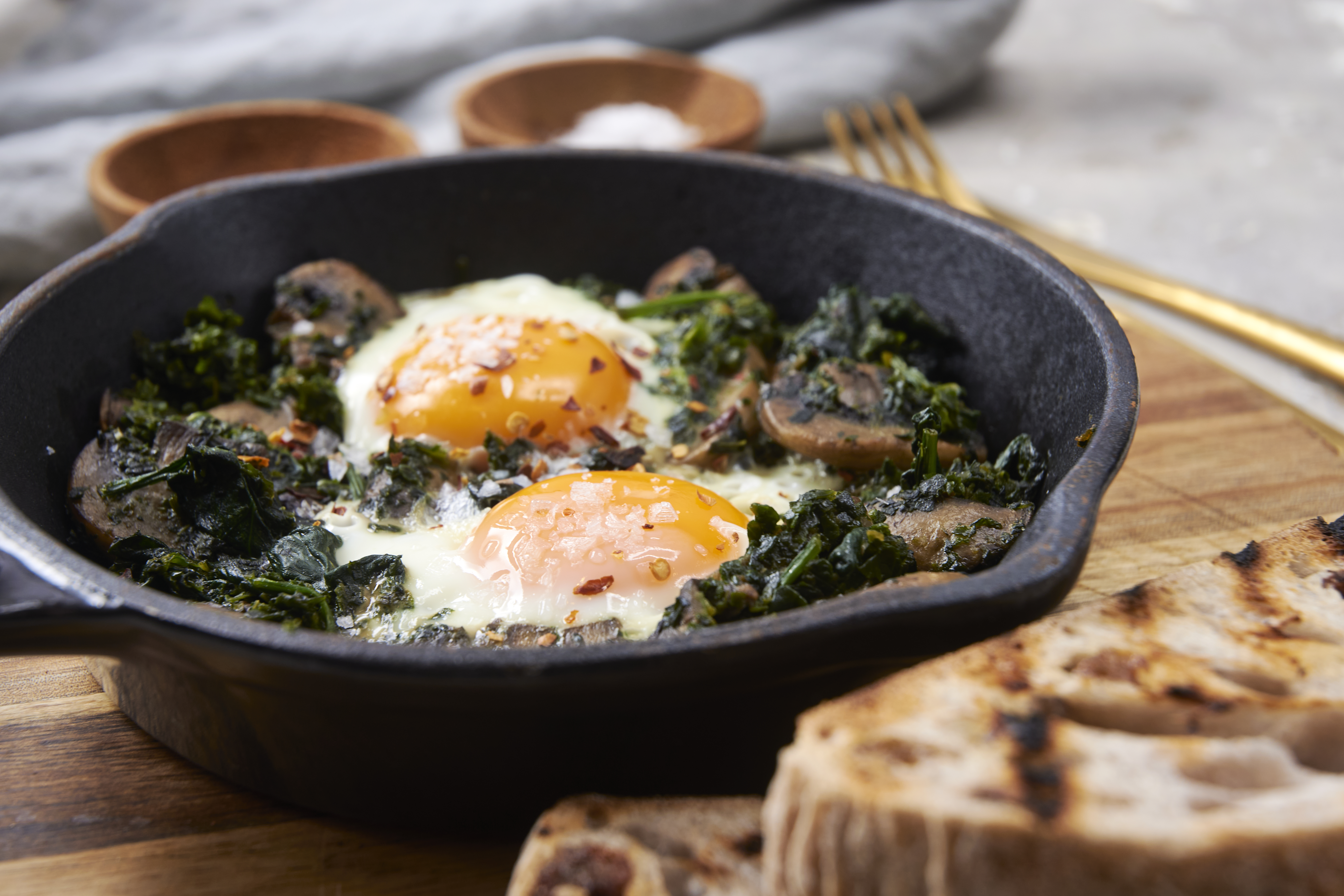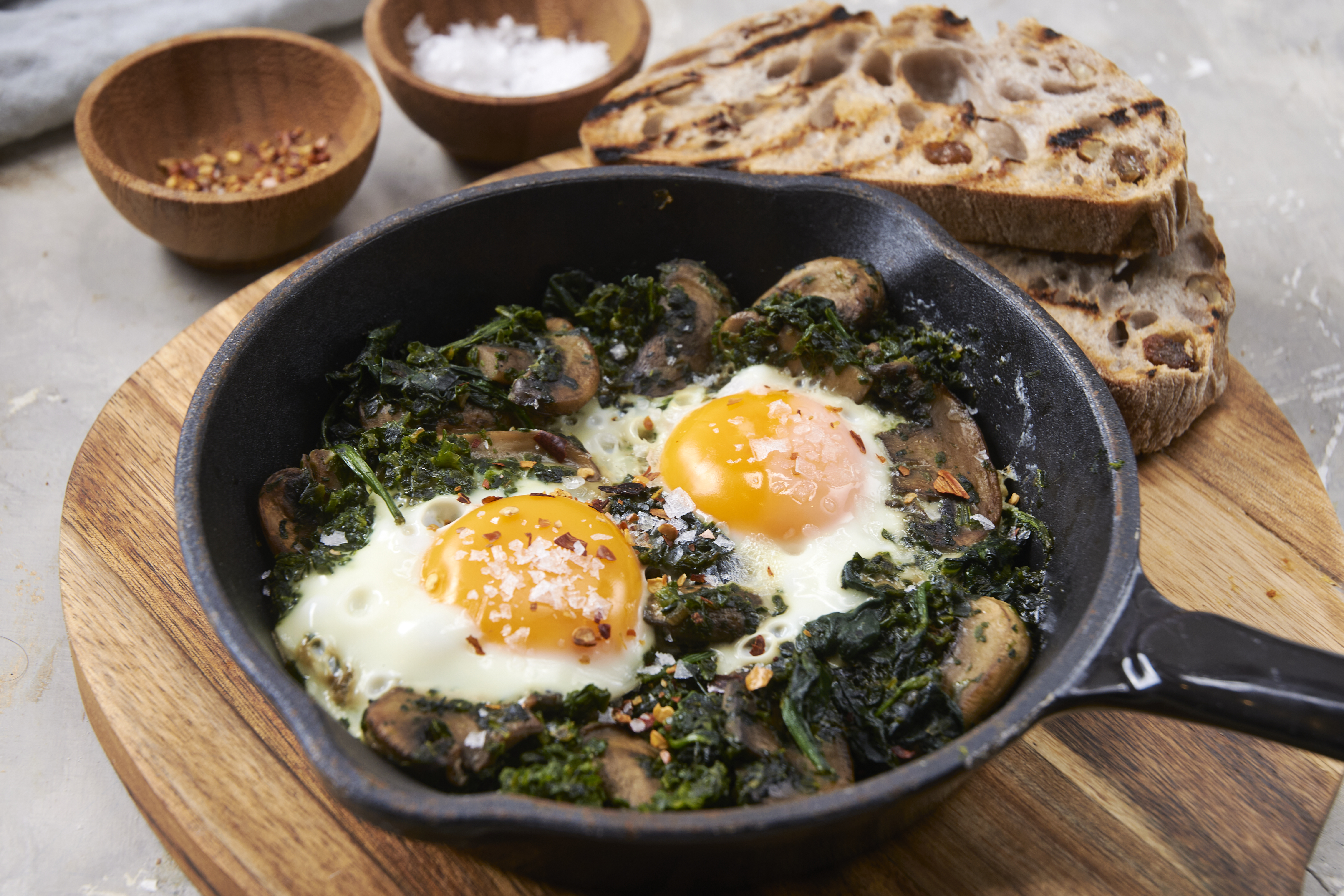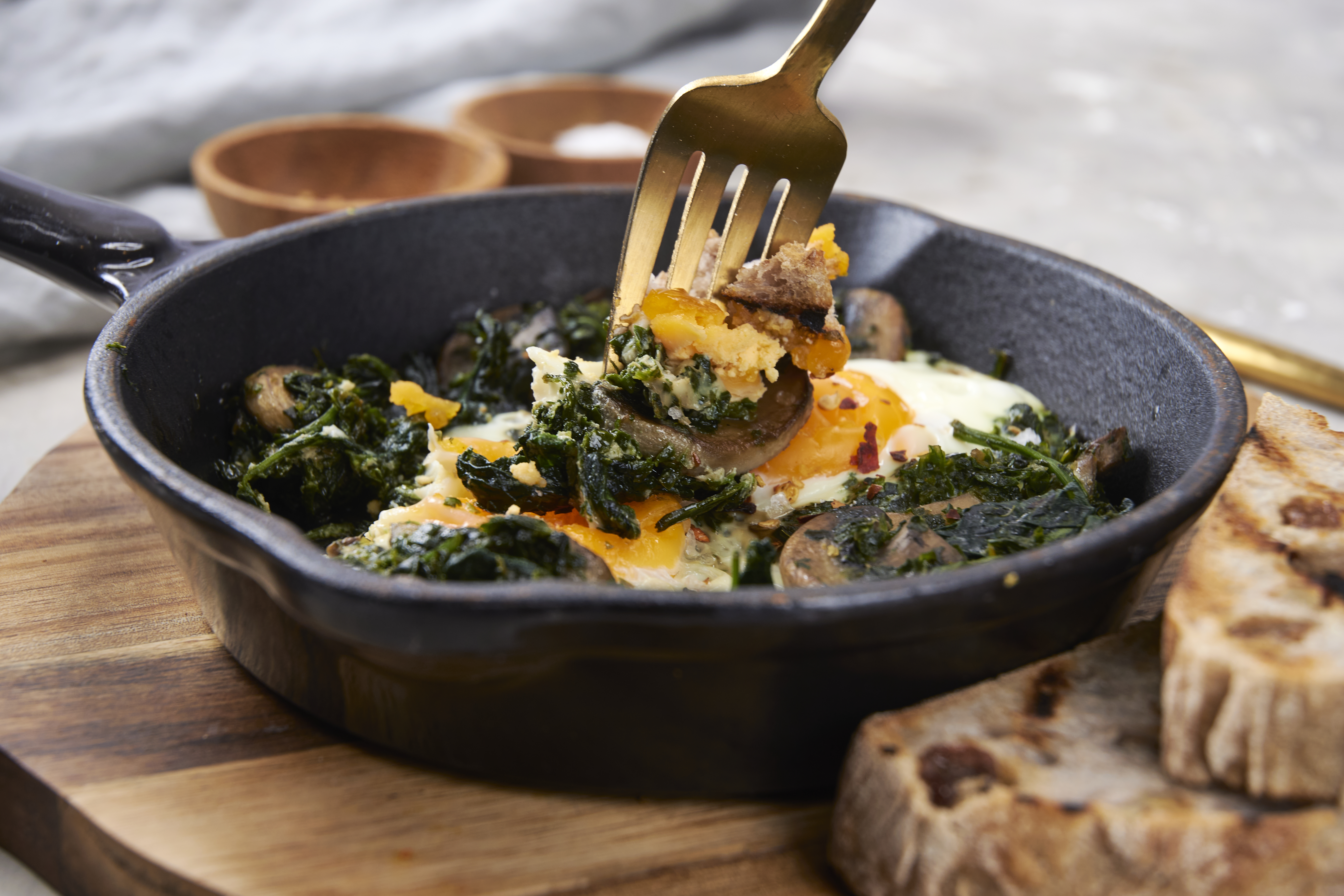 Autumn is here! The leaves are falling! The air is crisp! And the farmers markets are getting more and more crowded by the minute! Quick! The Fall Harvest Breakfast Skillet will get you energized and out the door for whatever fall adventures you have planned! Runny, sunny-side up eggs are nestled in between a savory and filling mushroom and spinach mixture with a touch of spice! Fall Harvest Breakfast Skillet is speedy and delicious so you can focus on beating the lines to the farmers market!