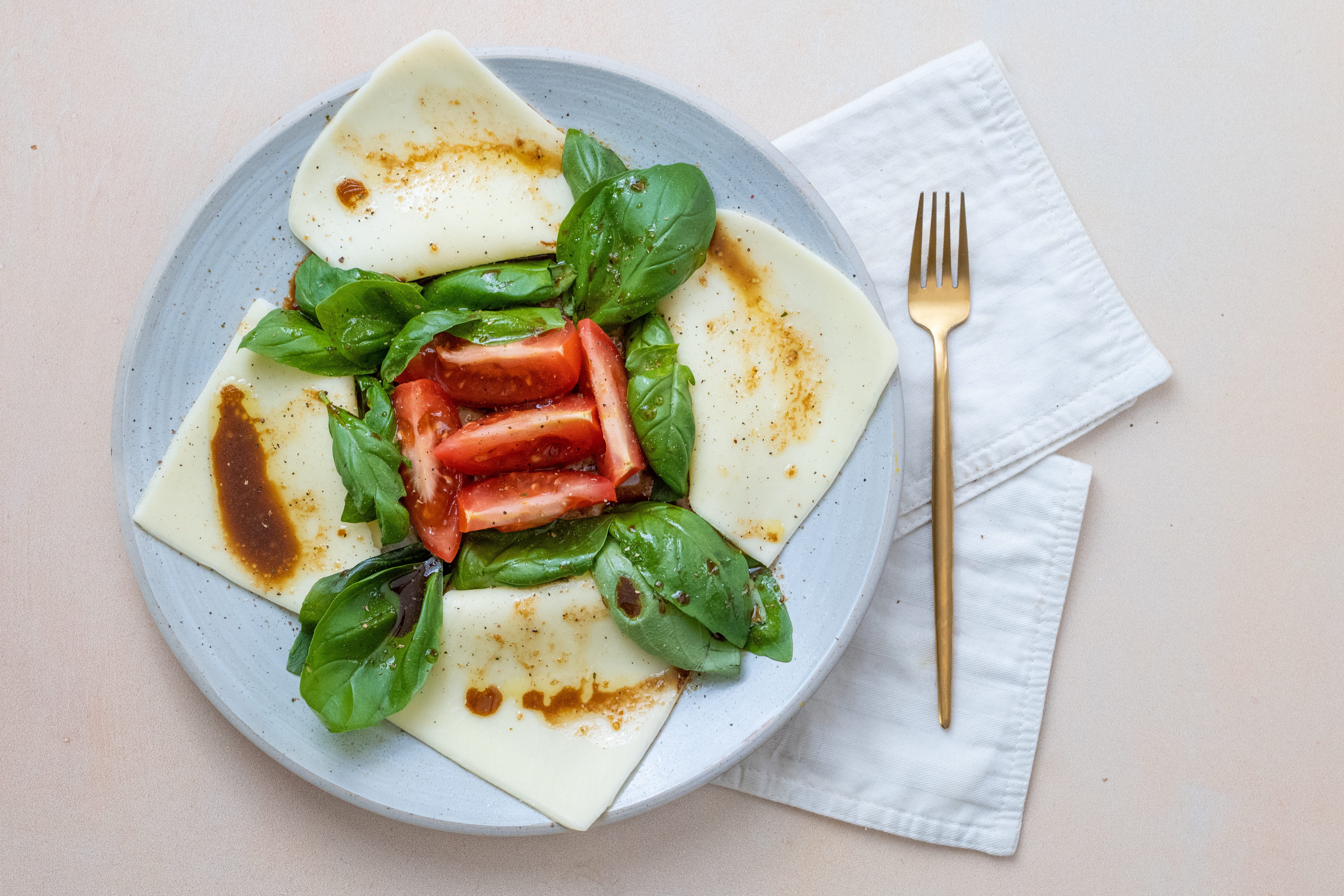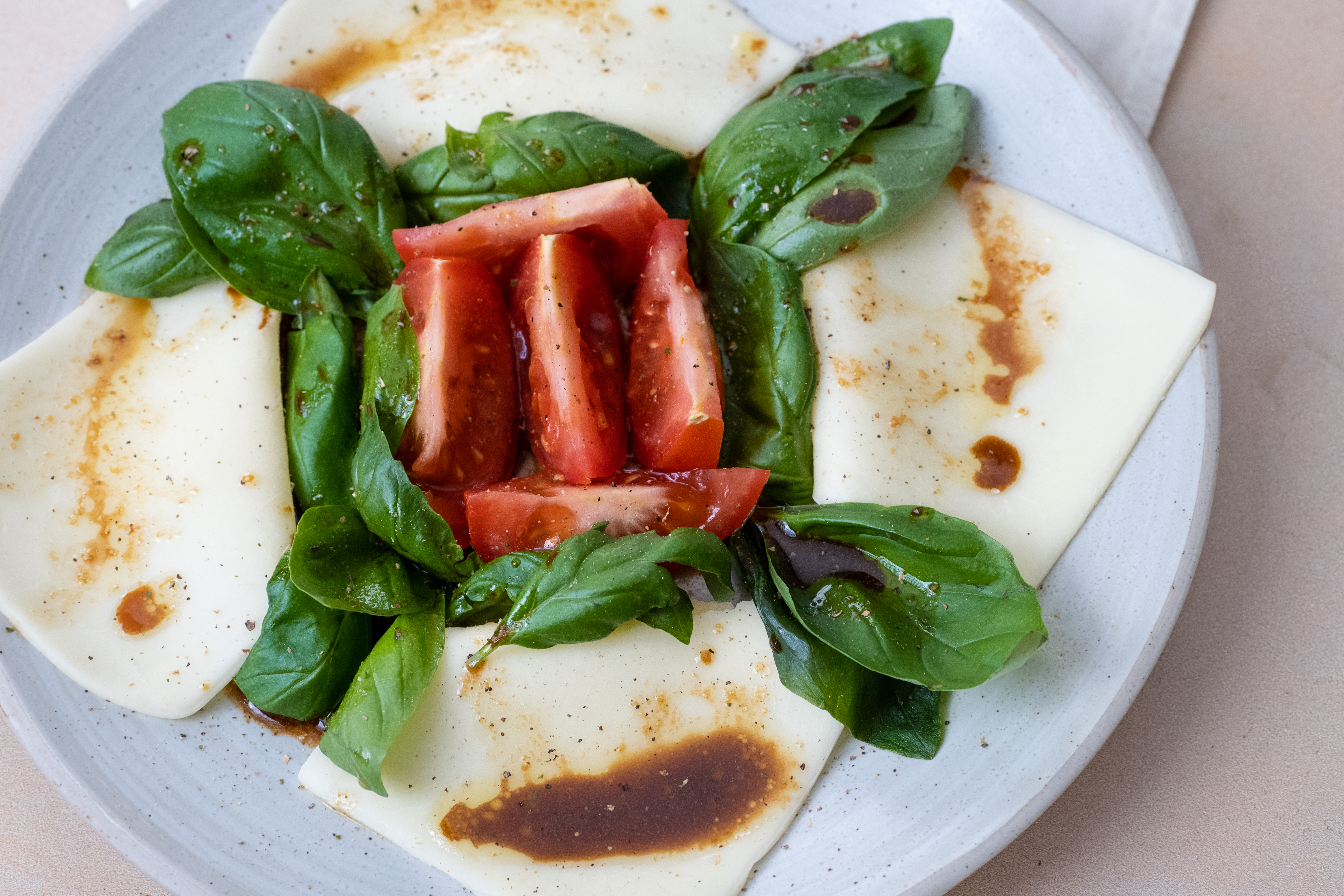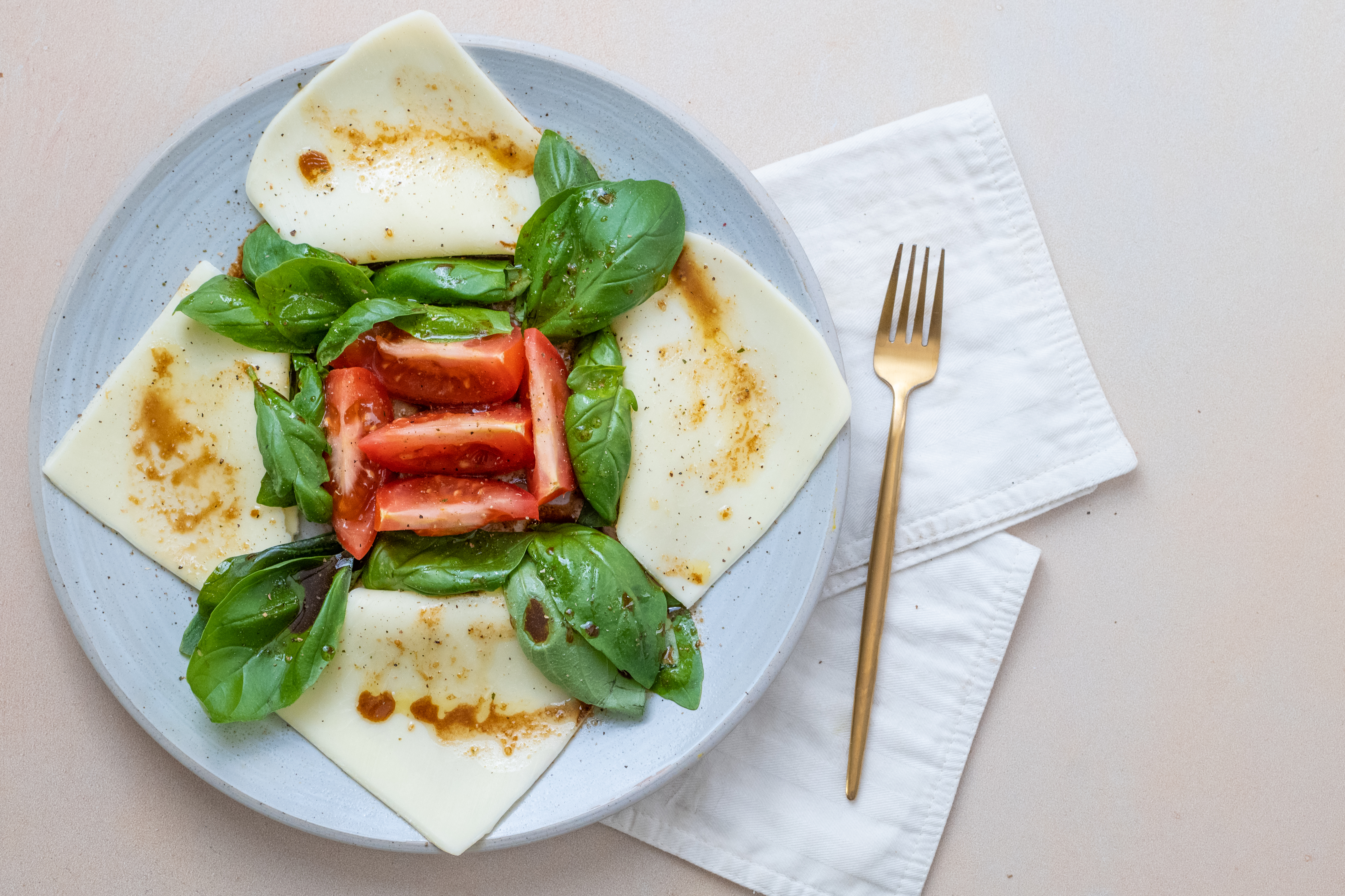 Unsurprisingly, this Home Run Caprese Salad is simple and quick and knocks it out of the park! Juicy, vibrant tomato and melt-in-your-mouth mozzarella, arranged with fragrant, herbaceous basil, would already be a triple in baseball terms (see what we did there?). But then the extra-tangy dressing makes all those exciting flavors electric! Your taste buds will be running the bases in celebration for this Home Run Caprese Salad!