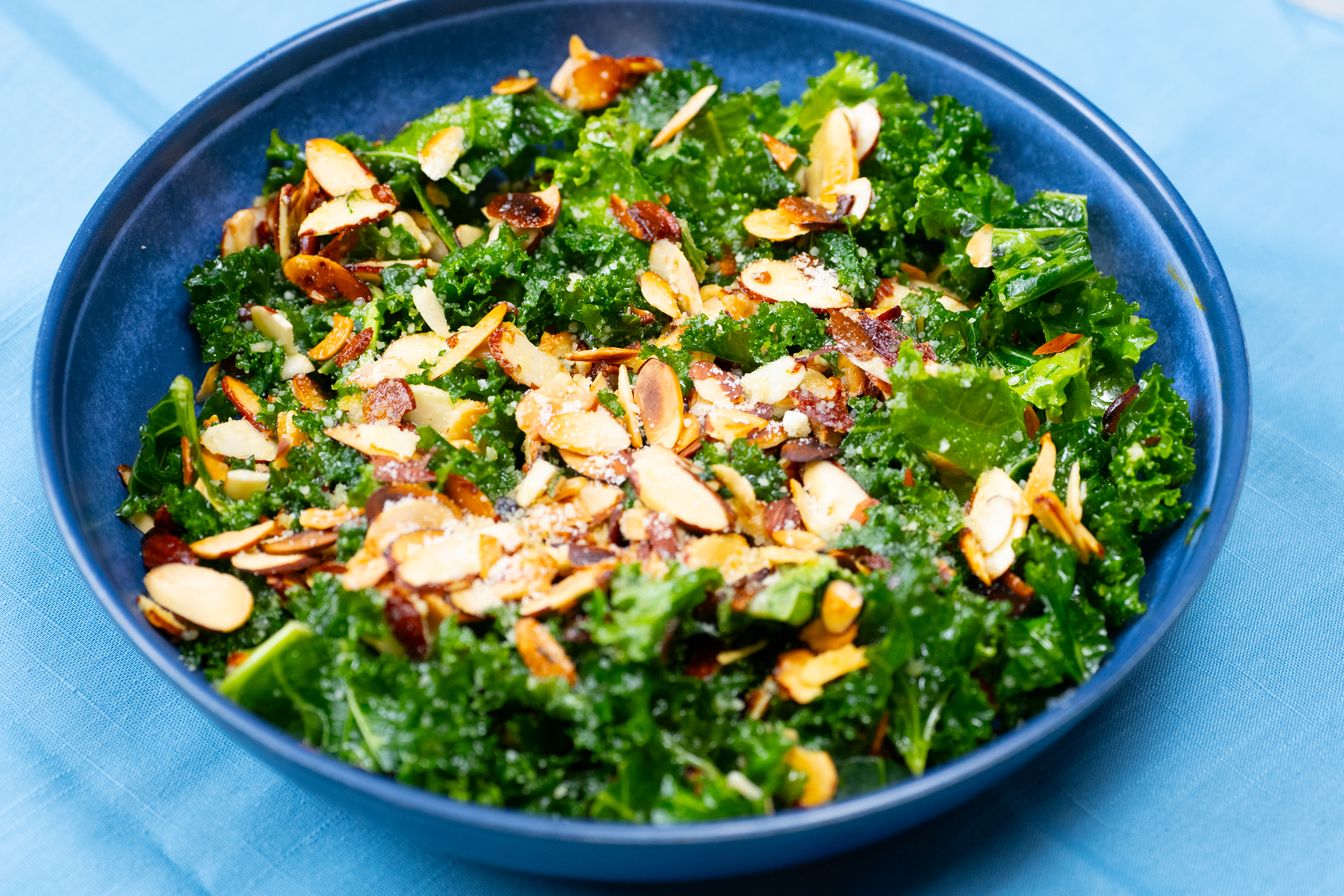 Step 9 -Sprinkle the kale with the almonds and the parmesan.