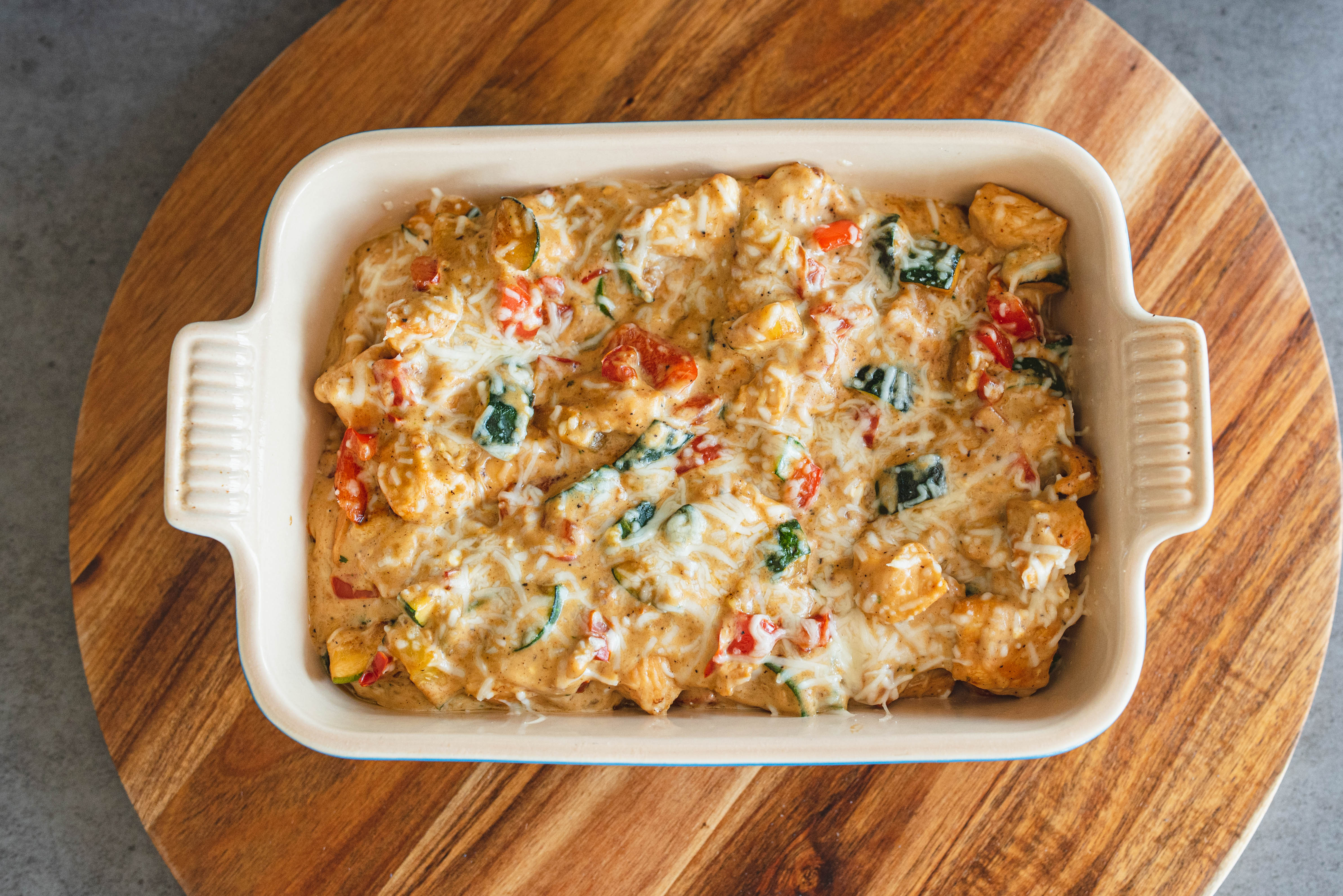 Low-Carb Chicken Zucchini Casserole truly has it all! Believe it or not, it's a dish that's both delicious and healthy! Loaded with protein-rich chicken, nutrient-dense zucchini, crunchy bell pepper, rich cream cheese, and melty mozzarella cheese... your taste buds will be tricked into eating something good for you! Another plus about this dish? It's easy to make and perfect for meal prep. There really is no excuse as to why this Low-Carb Zucchini Casserole wouldn't frequently be served as the main dish for dinner at your table! It's the whole package!
