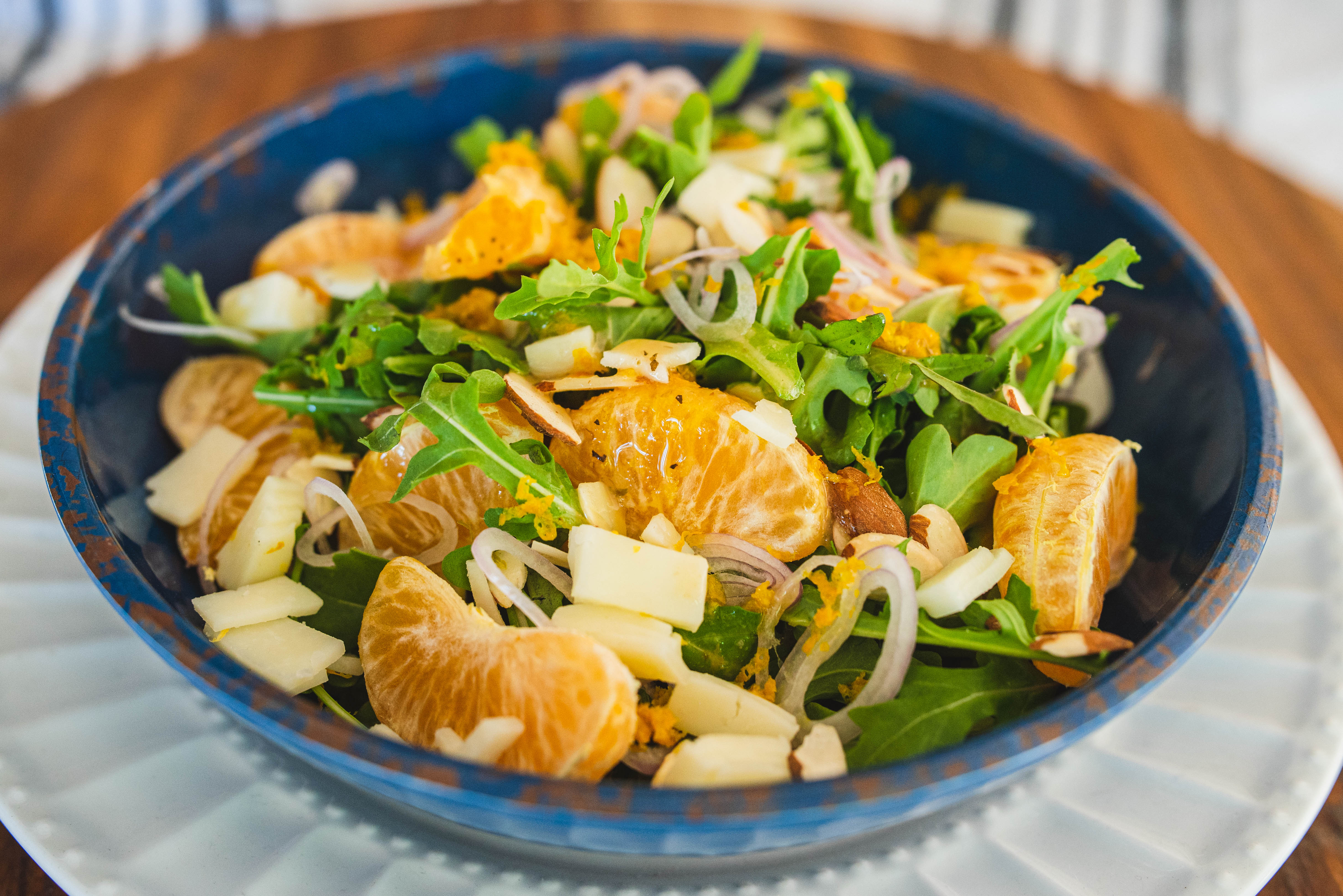 Here are some fun facts you probably don't know about Nicole Kidman! She was born in Honolulu, Hawaii to her Australian parents, she is a trained opera singer, and she is afraid of butterflies! Aren't those so interesting?! We definitely learned something new today. What you might also find fascinating (we do, for sure) is this Nicole Kidman Salad that we named after her. It'll almost make you feel like you're living a similar fancy lifestyle to this successful actress, as you top peppery arugula with some nutty manchego cheese, juicy oranges, salty almonds, fresh mint, delicate shallot, and a creamy, tangy, homemade dressing. Yum, right?! Nicole Kidman Salad will certainly make your tastebuds feel like they're leading an extraordinary life... just like Nicole herself!