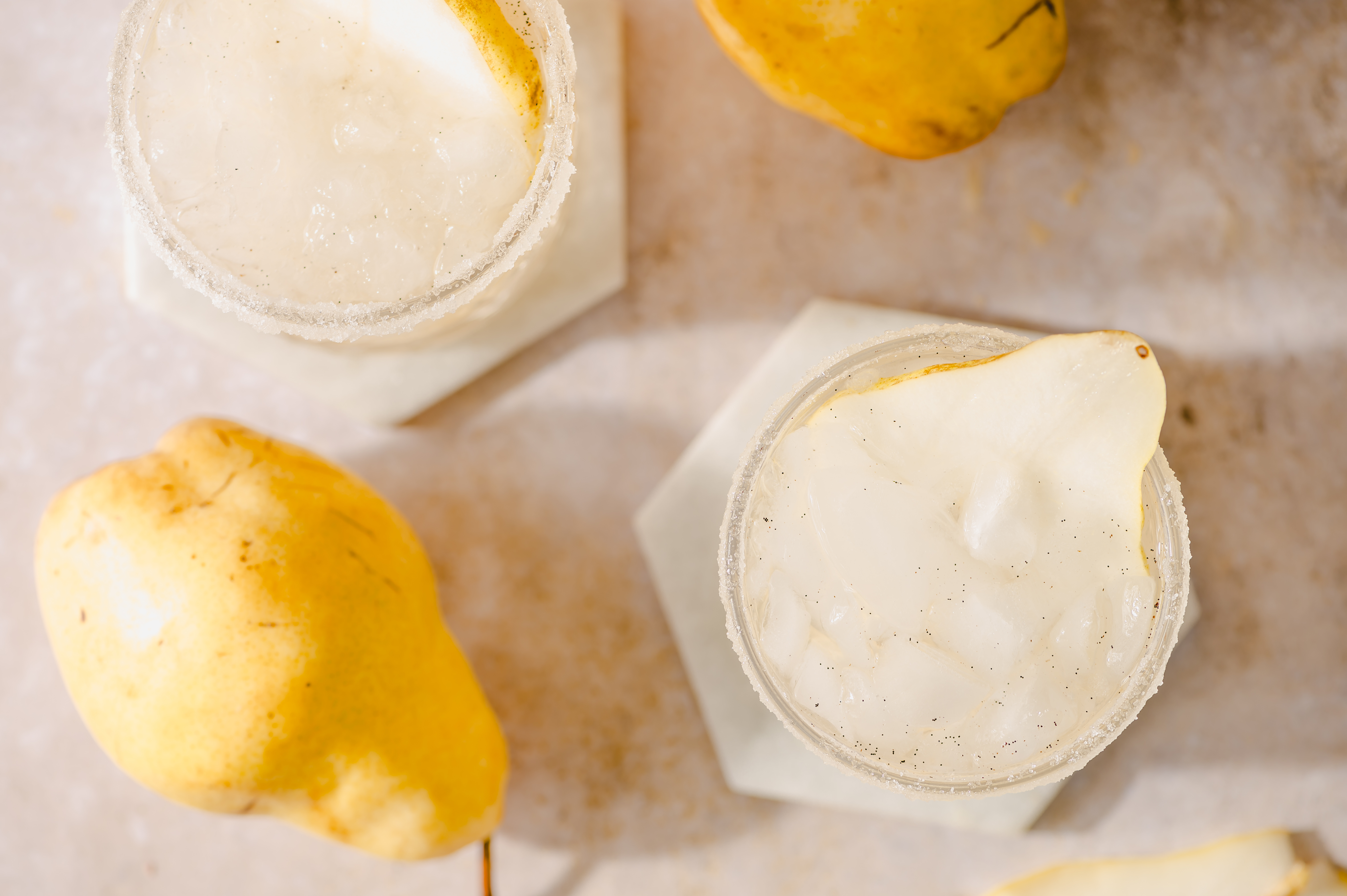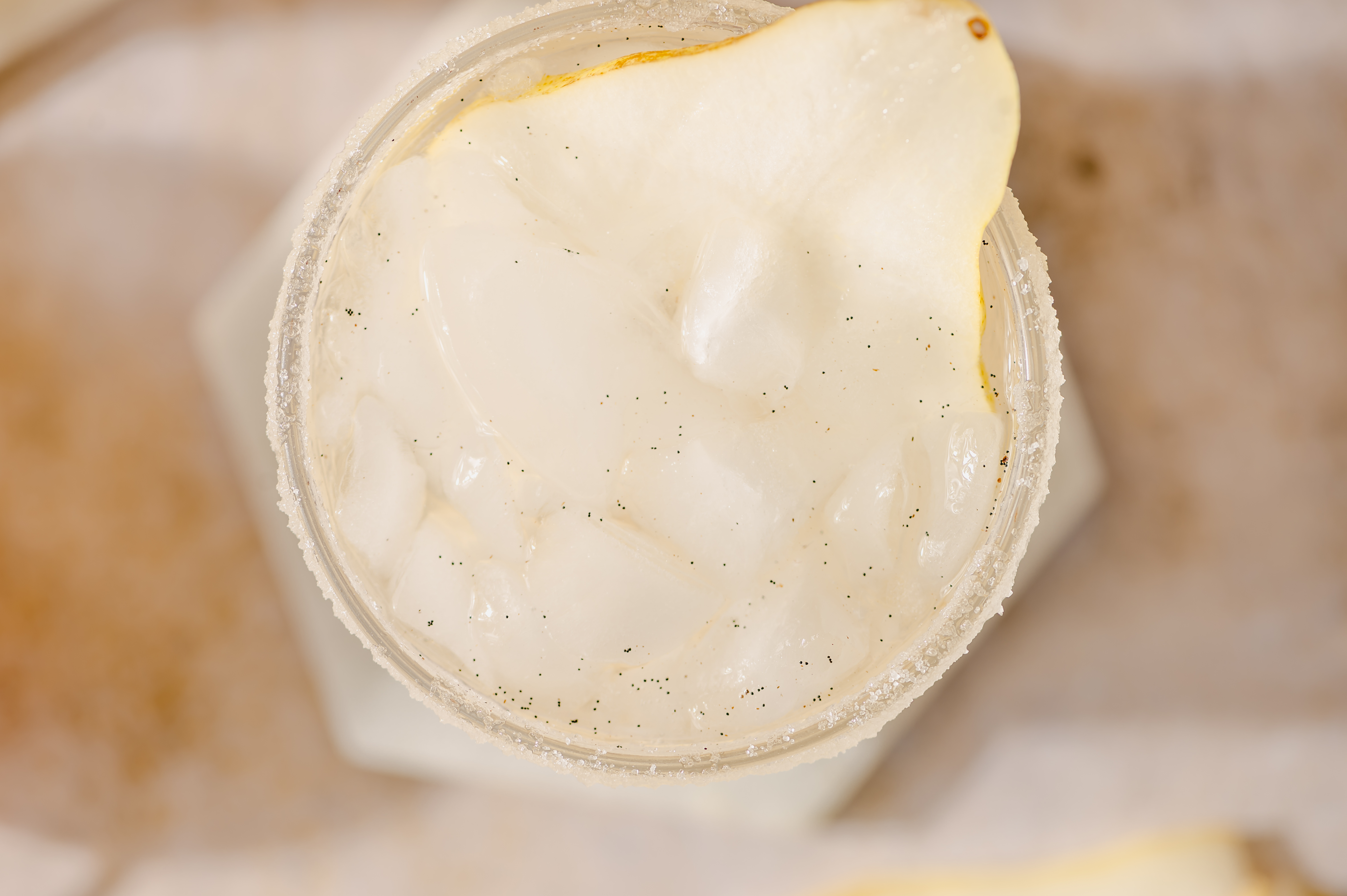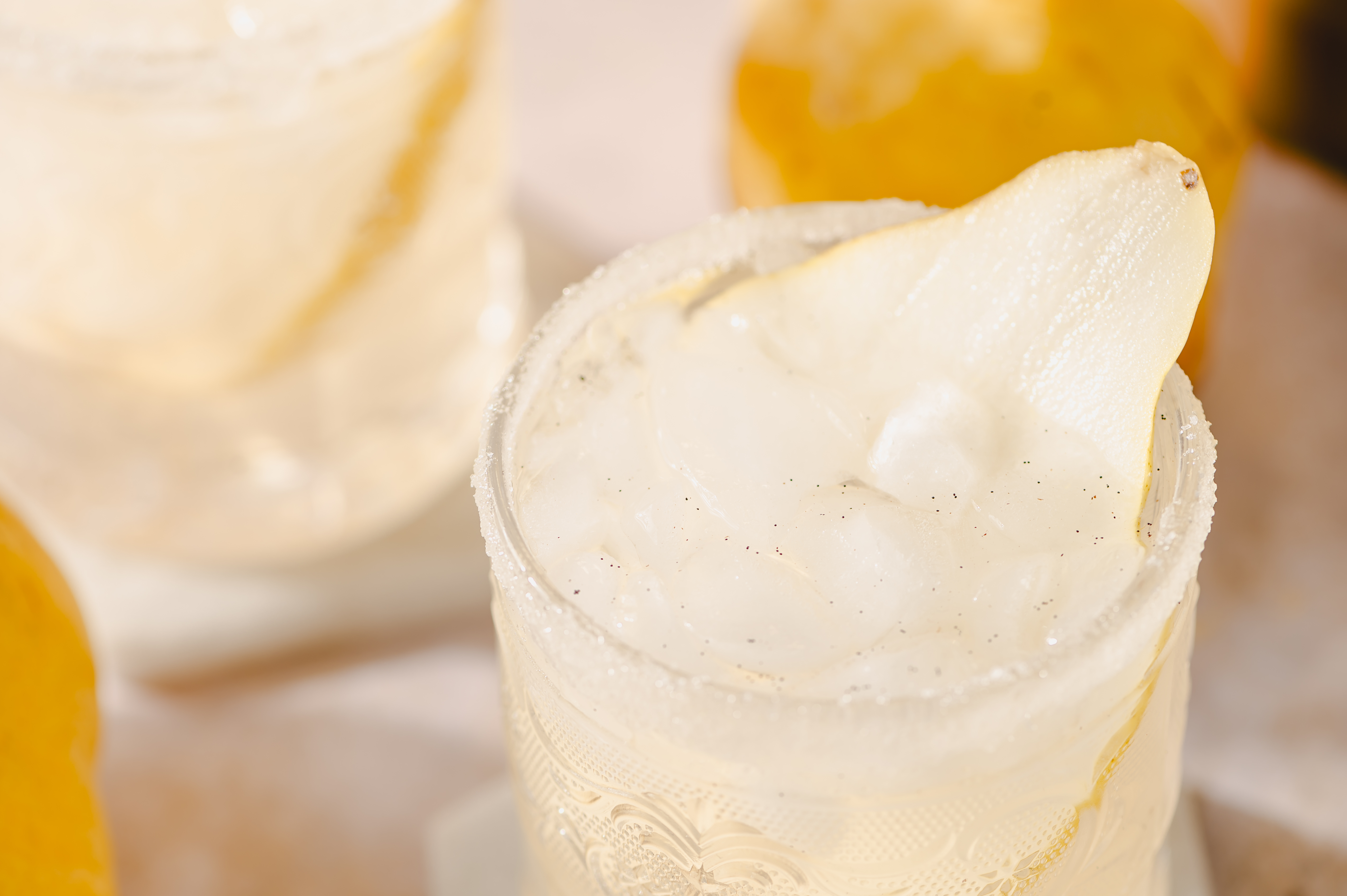 Step 11 -Serve the drinks garnished with the extra pear slices and the vanilla powder.