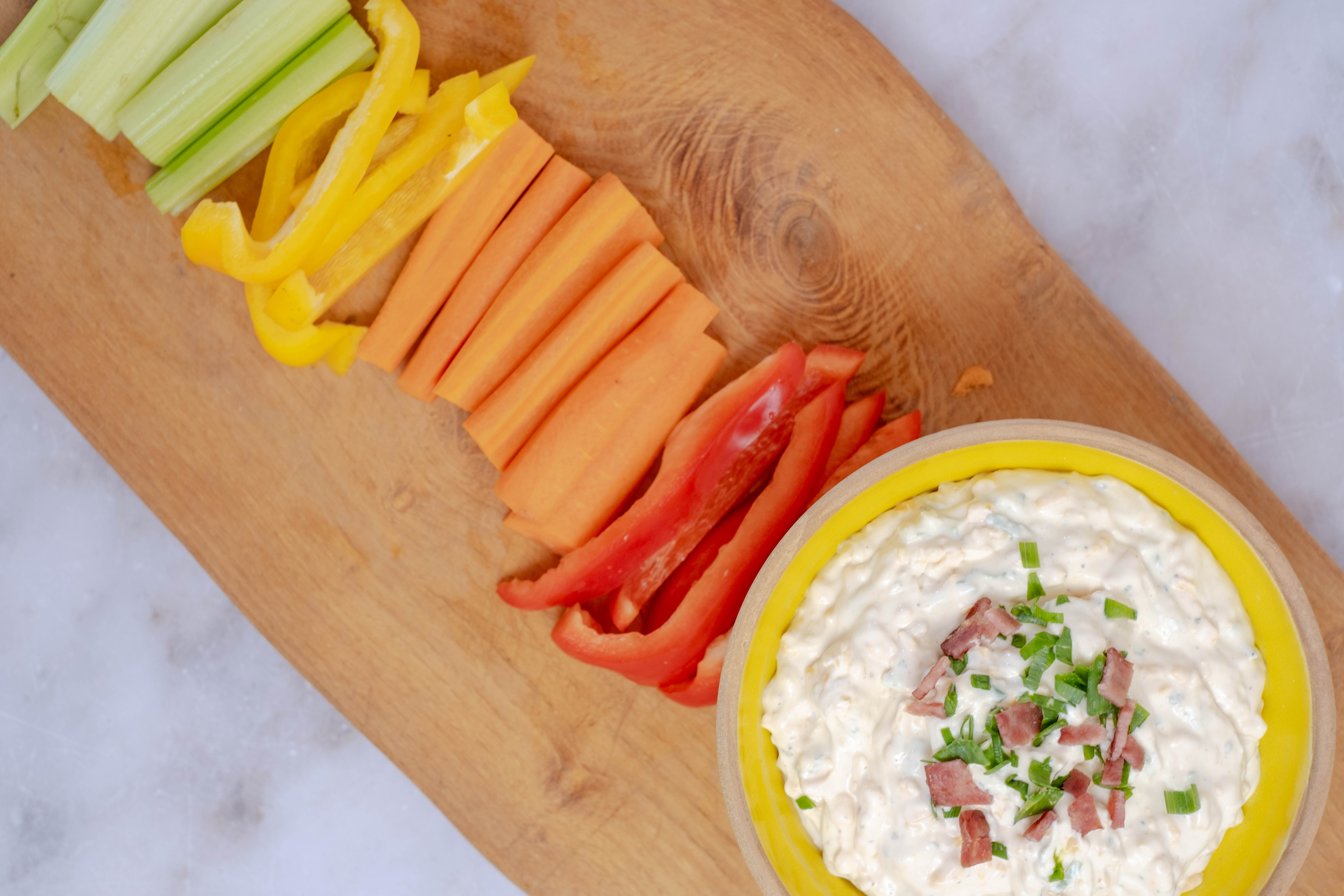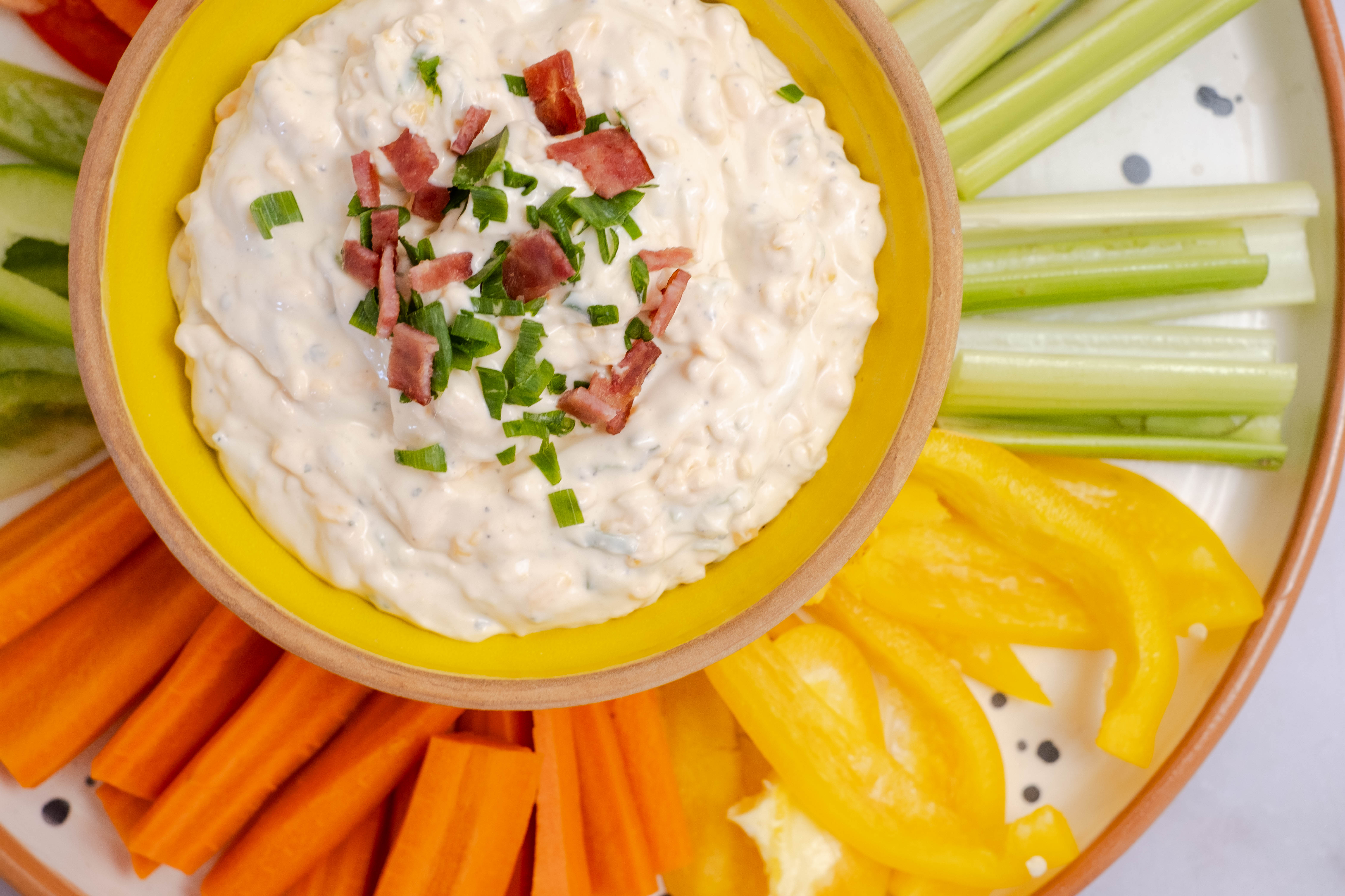 This is not just any ranch dip. This is Ranch Crack Dip; the epitome of ranch dips! The inclusion of succulent bacon bits certainly does elevate it, but it's more than that! It's the tanginess and the zestiness of the spices mixed in, the cheesy goodness and the sharp savory flavor of green onions. You'll be more than eager to crack into this Ranch Crack Dip!