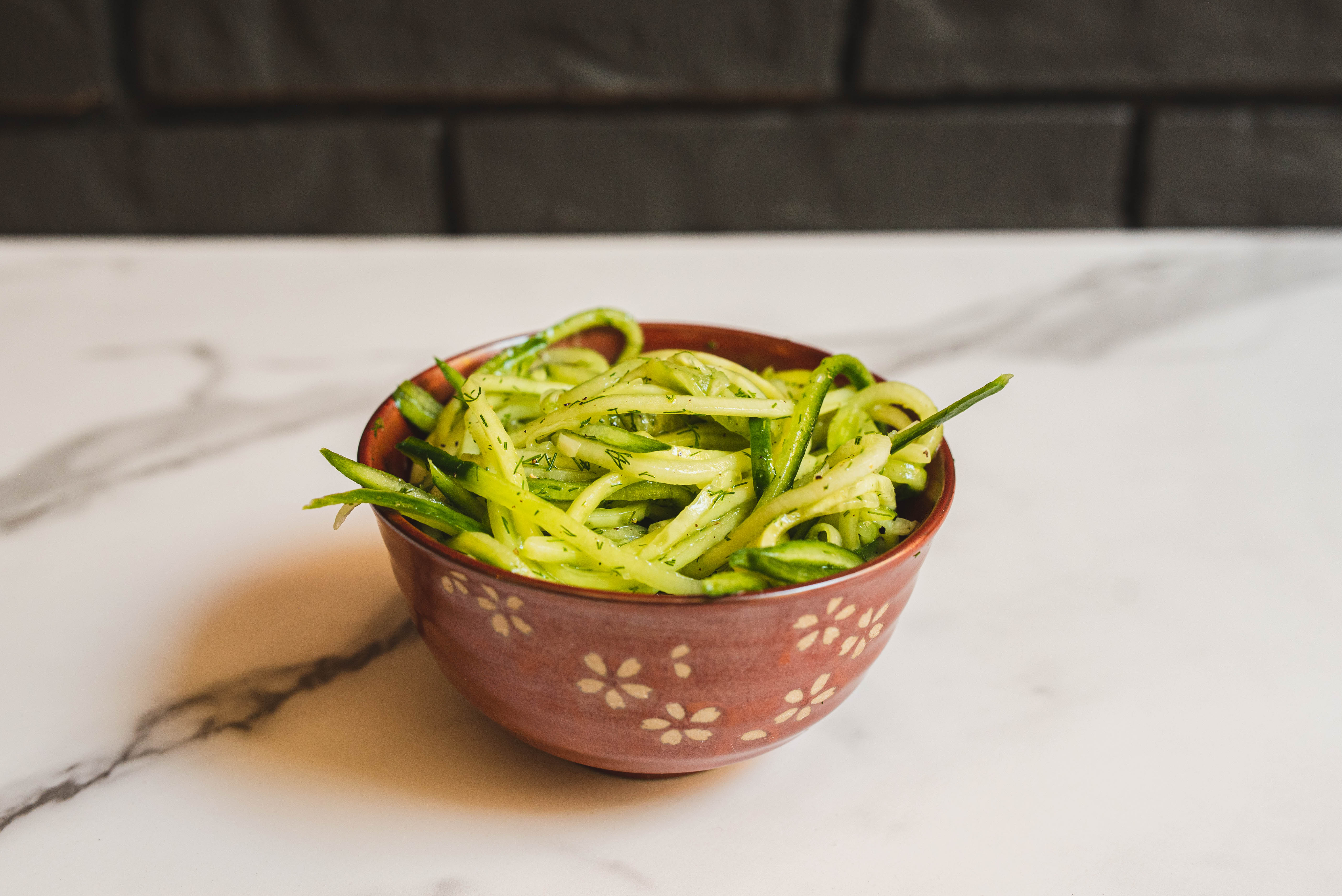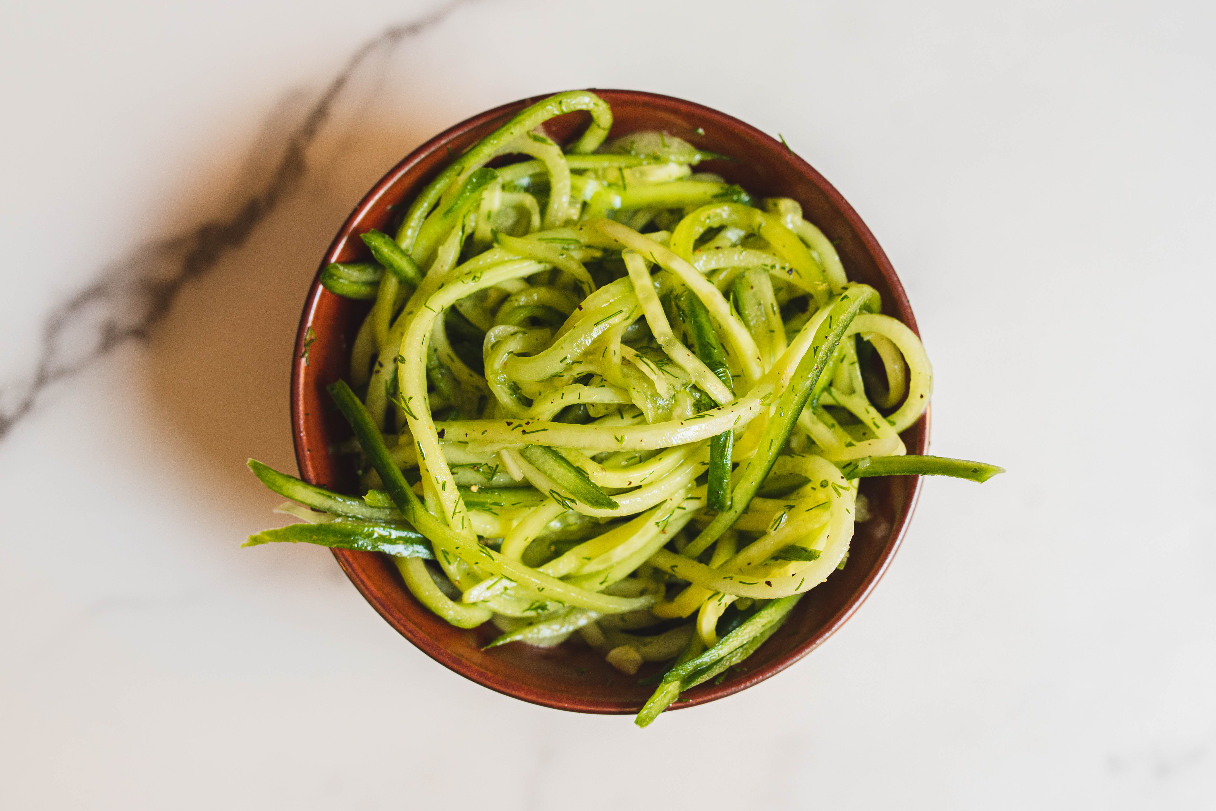 Step 1 -Using a mandolin or a sharp knife, slice the cucumbers into sticks.