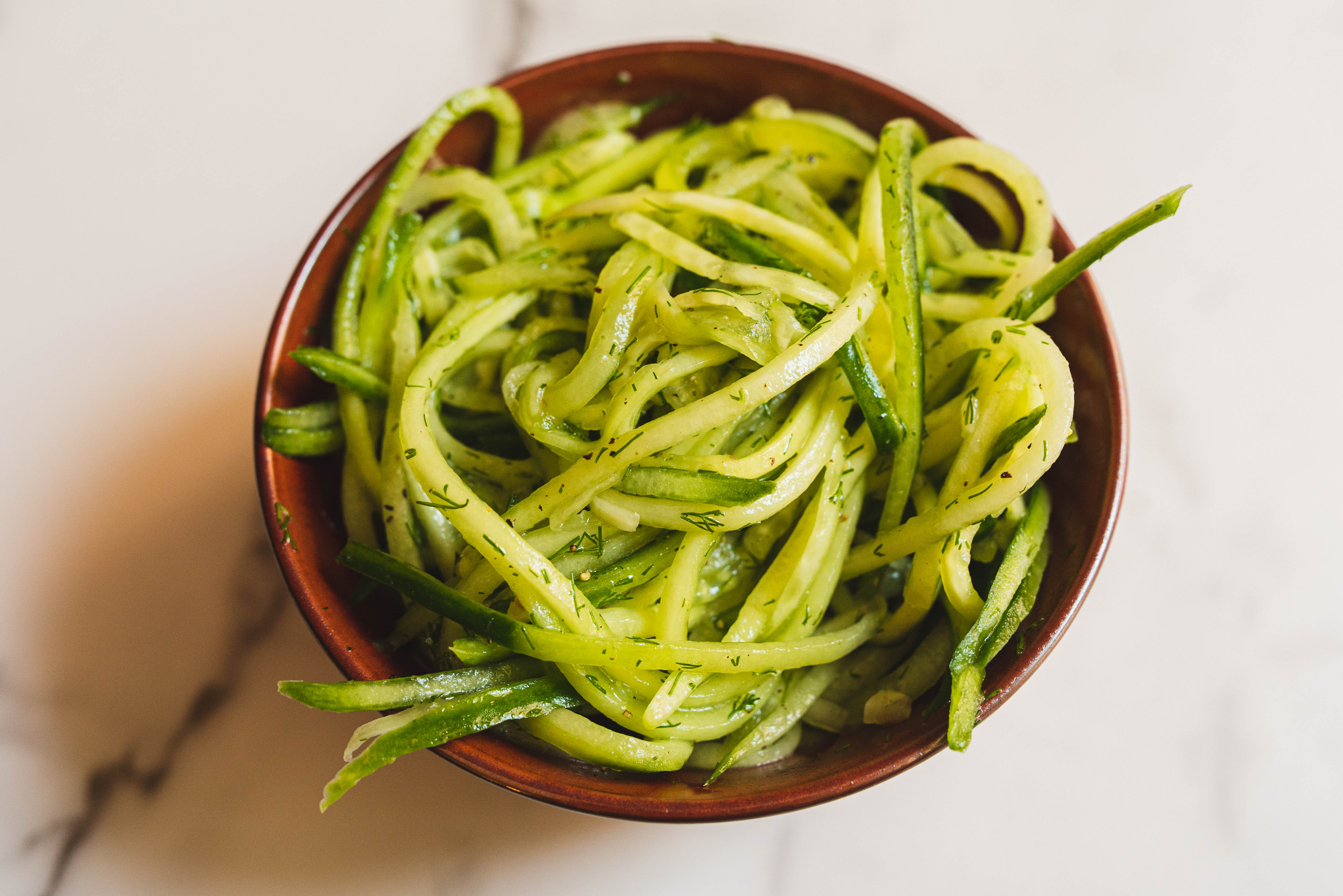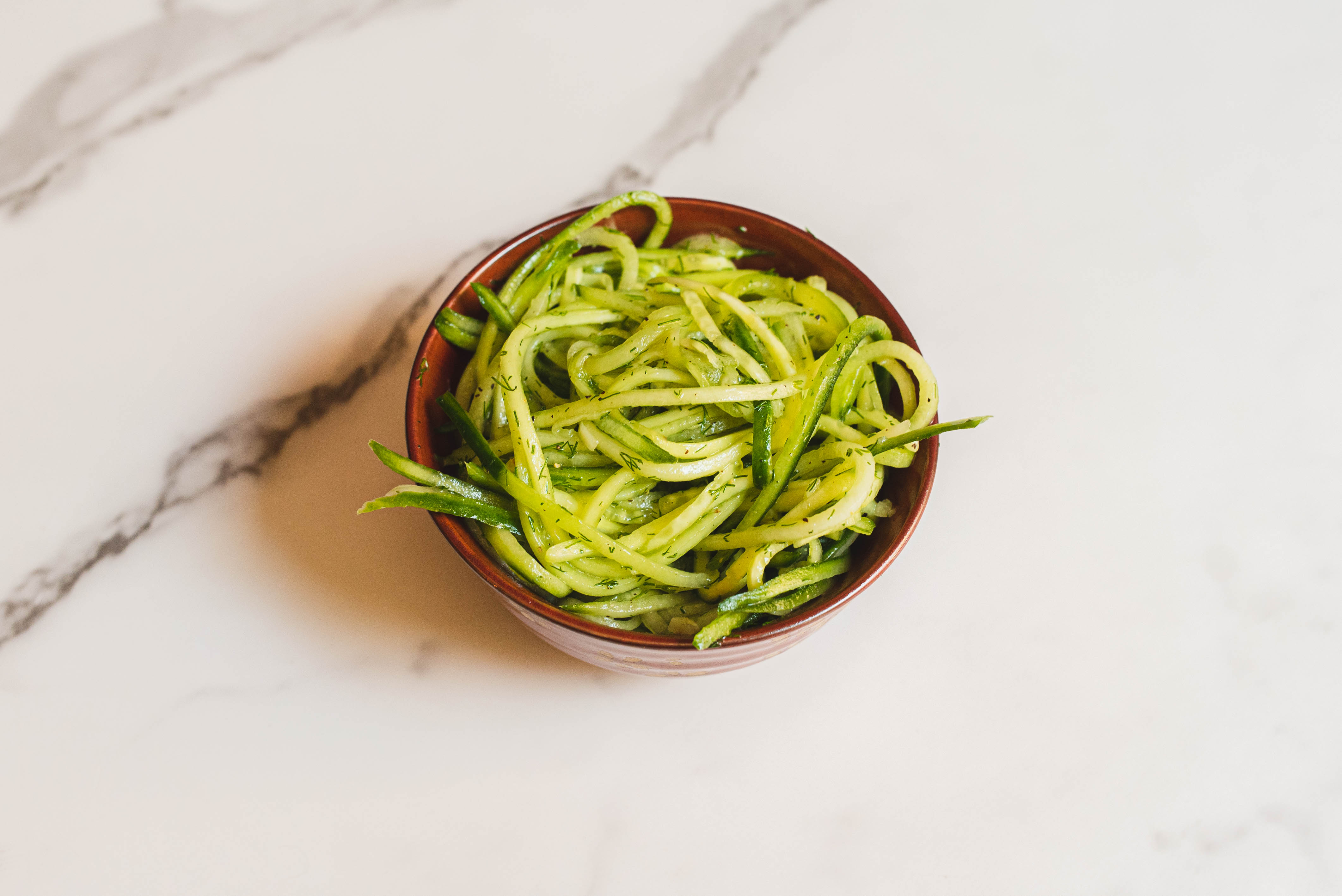 Step 3 -Add the fresh dill, the minced garlic, the lemon juice, the olive oil, the salt, and the pepper to the cucumber and mix well to combine.