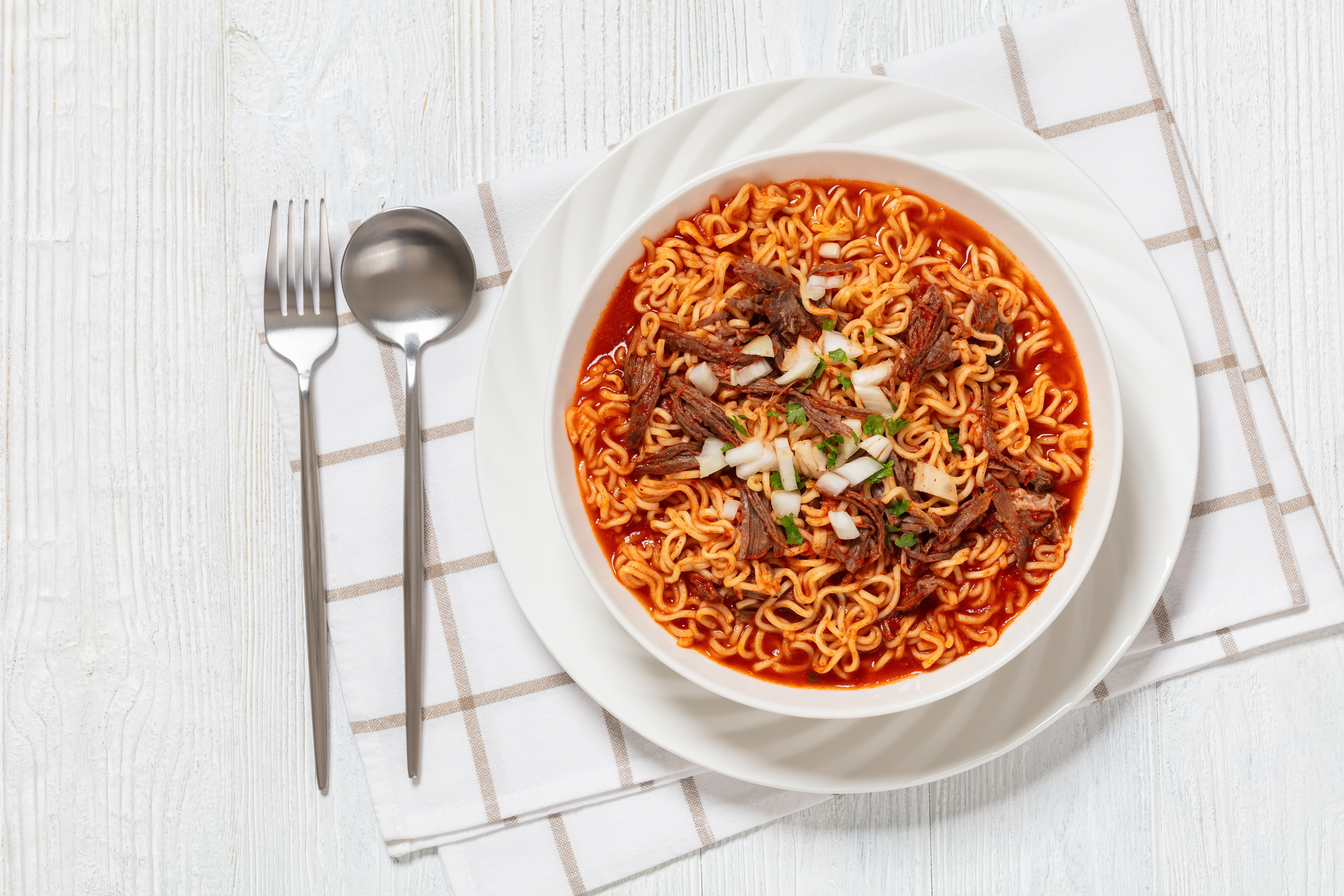What's the secret behind Secret Ramen? It's a fusion dish! But not just any fusion... it's a Japanese-Mexican fusion, combining tender ramen noodles with Mexican spices and distinct heat. A delectably slow-cooked beef roast, cooked like an authentic birria in a hot pepper braising liquid, adds succulence and decadence to an already incredible dish. The ramen is cooked in that sauce too, because that delicious flavor needs to be infused every step of the way! Secret Ramen makes no secret about how tasty it is!