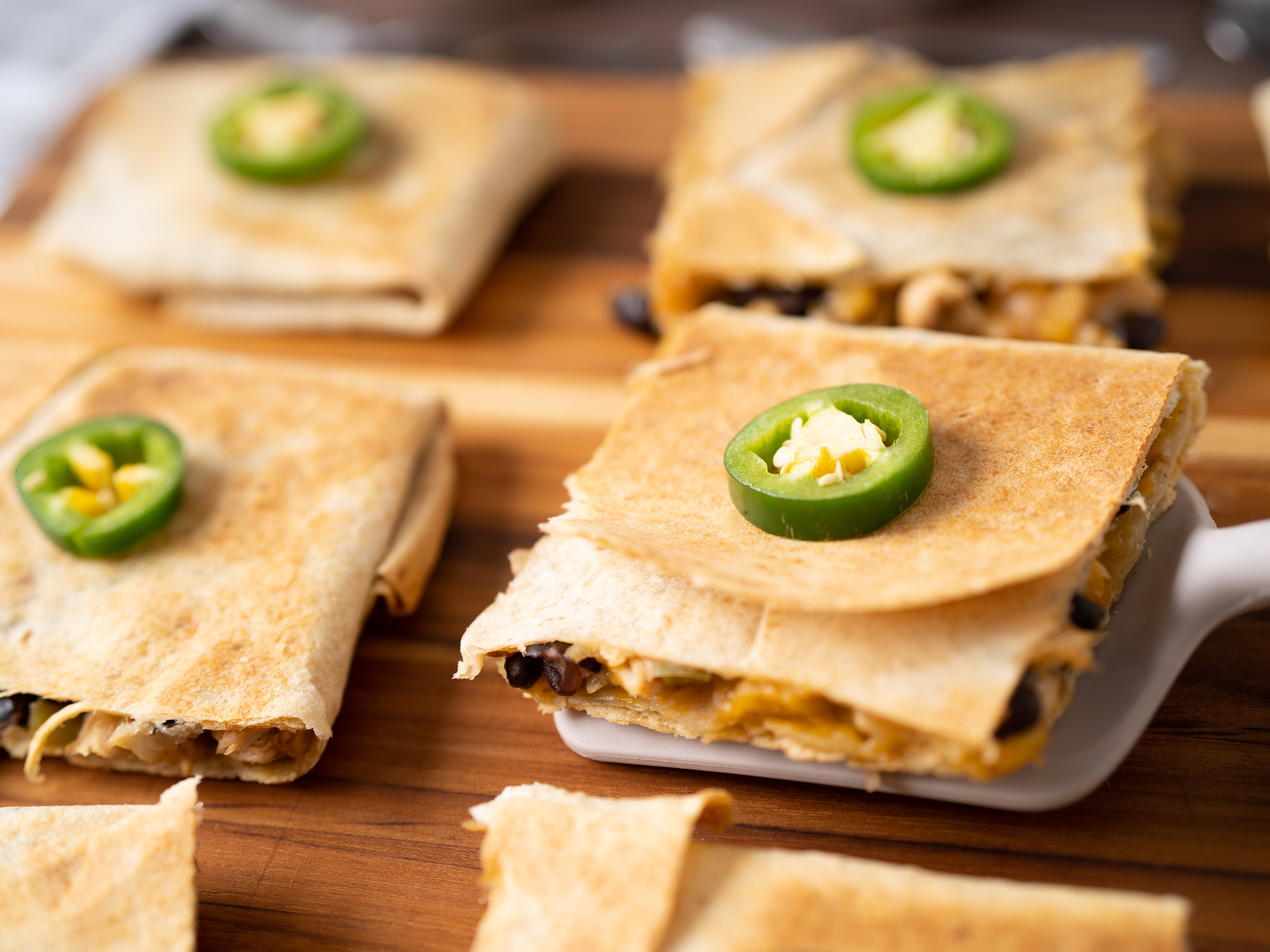 What's the greatest tragedy when it comes to quesadillas? It never feels like there are enough! The Sheet-Pan Quesadilla ensures there is plenty for everyone to enjoy the crispy-on-the-outside, hot-and-savory-on-the-inside Mexican-style meal, and the resulting happiness can be seen from space! Filled with juicy, Tex-Mex spiced chicken, hearty black beans, seared fajita vegetables, and melty cheese, the Sheet-Pan Quesadilla is the embodiment of pure joy emerging from your own oven. Grab sour cream, salsa, guac, or whatever dips you can think of because the party is just about to start!