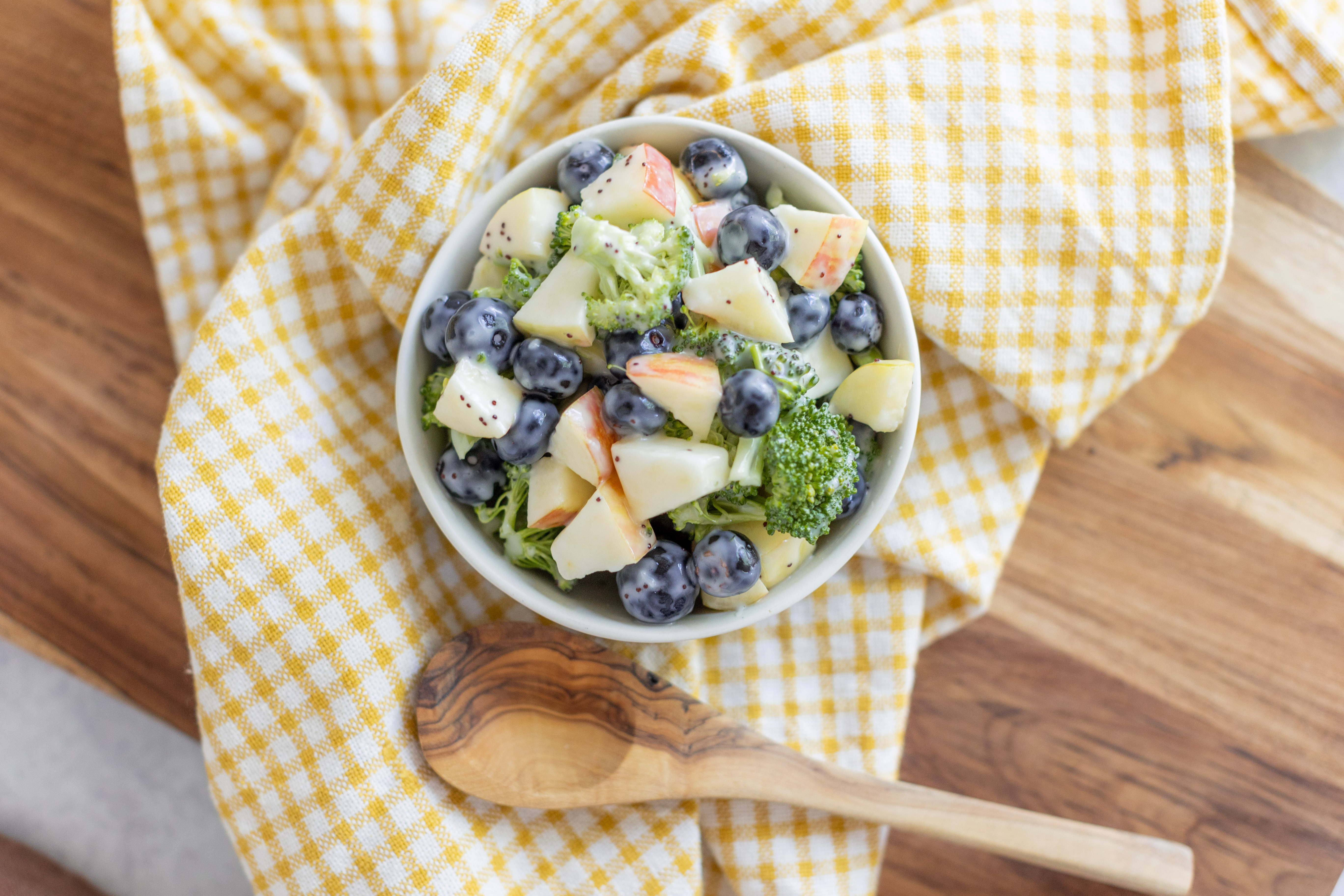 Step 2 -In a large bowl, mix the broccoli, the blueberries, and the apples.