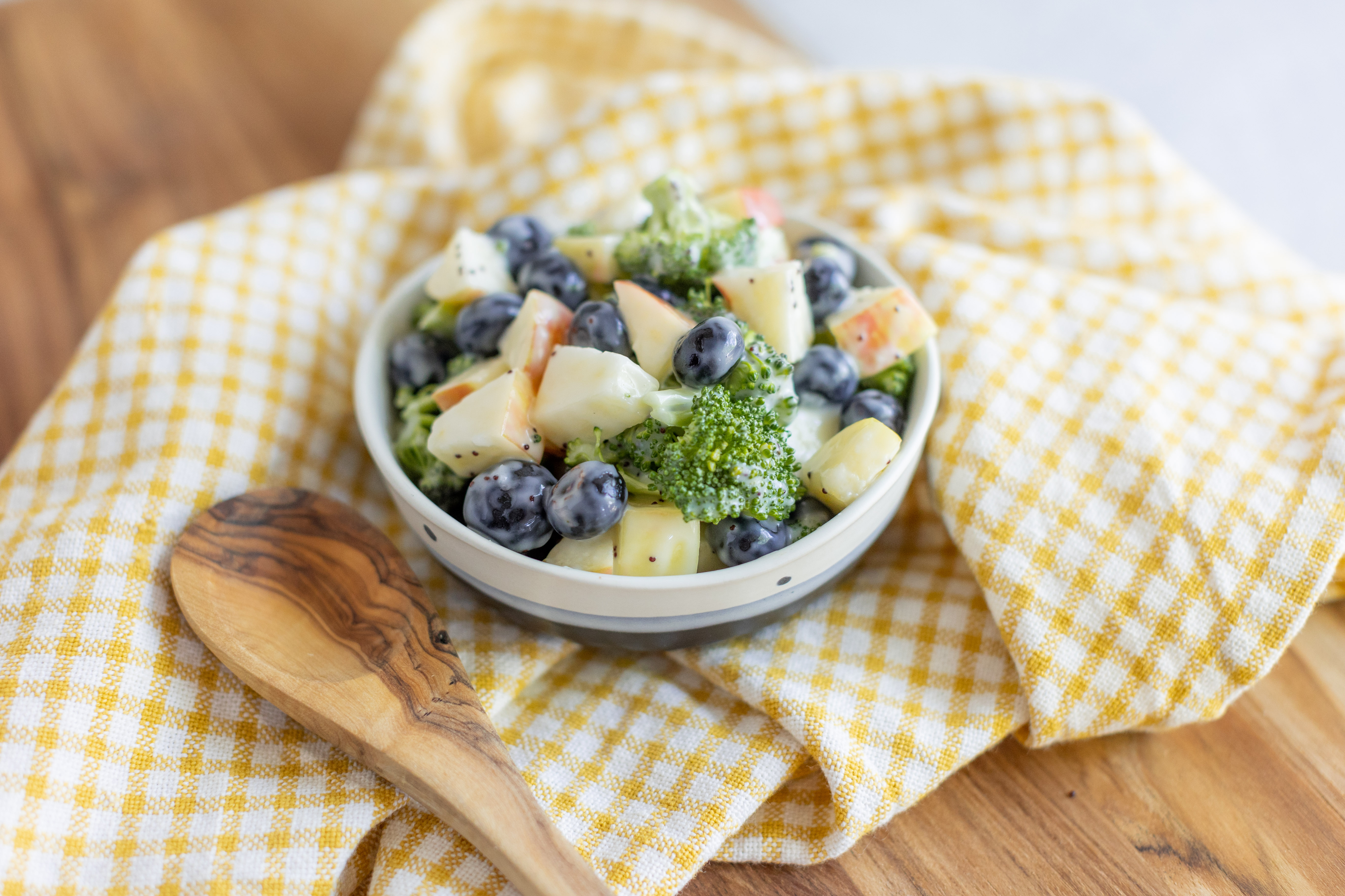 This isn't just an incredibly flavorful, delicious salad, but also a slimming one! With garden-fresh broccoli, crisp apples, and bursting bright blueberries, Skinny Broccoli Salad would be a great combination even without dressing. But the simple, sweet, creamy, and tangy dressing brings it all together in a lovely harmony! This is a salad you'll be reaching for whether you're looking to lose weight or not!
