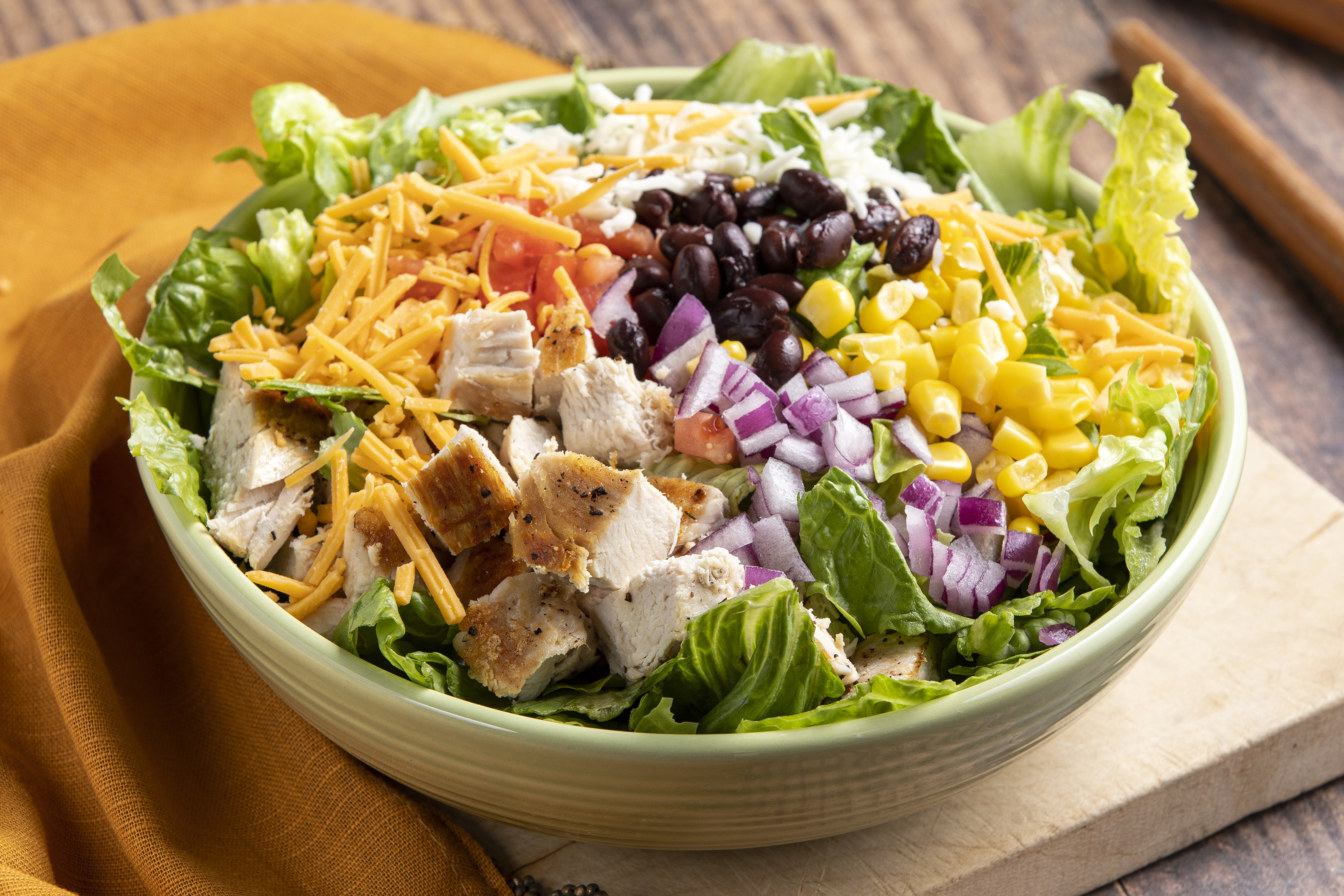 This salad has a little style, a little grace, and a whole lot of flavor! Southwest BBQ Chicken Salad loads up the crisp bed of lettuce with bright tomatoes, summery corn, creamy black beans, and plenty of sharp cheese. But it's the pan-seared chicken and the creamy, smoky, sweet, and savory blend of zesty ranch and BBQ sauce that really takes this salad over the top! This Southwest BBQ Chicken Salad is the best salad you could have for all your trailblazing days!