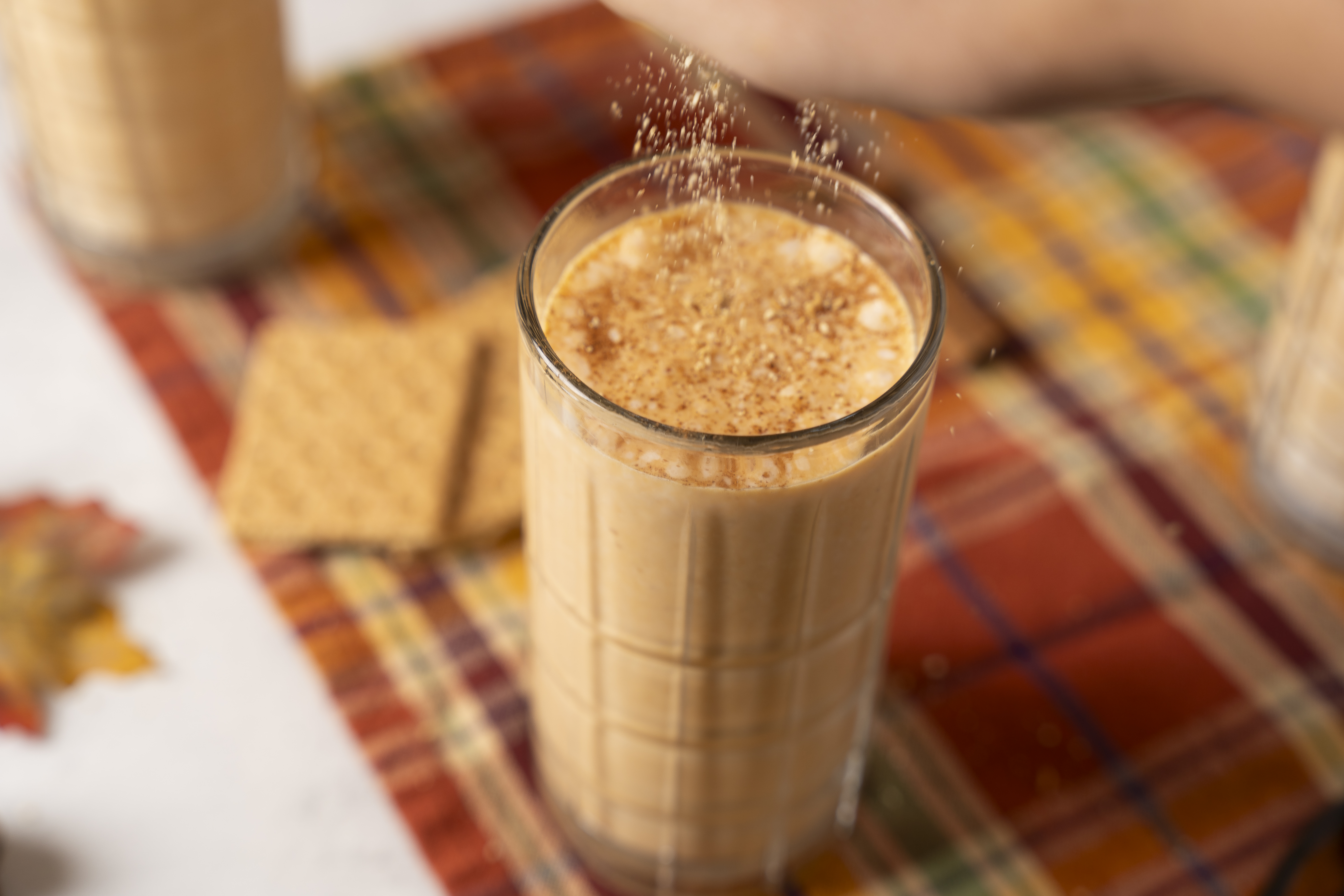 The refreshing and cool morning beverage gets into the spirit of Turkey Day, and you'll be extra thankful for it! This Thanksgiving Smoothie is primarily pumpkin, the epitome of autumn flavors, swirled up with some vanilla yogurt and whole milk to make it creamy and sweet. It even embraces the fun and festiveness of the season by garnishing itself with some graham cracker crumbles! Thanksgiving Smoothie will certainly have you thankful for it... and wanting more!