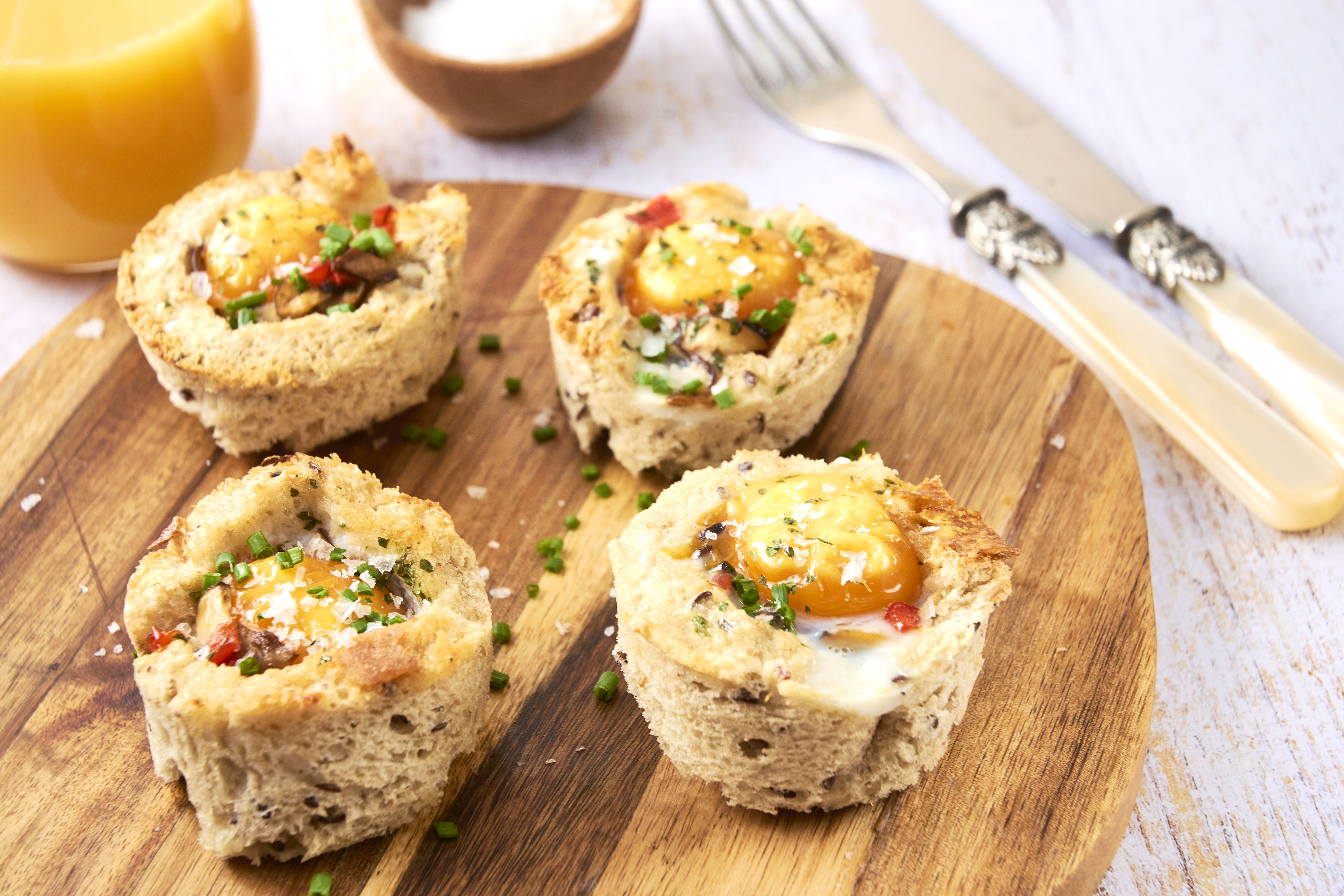 Step 12 -Repeat with the remaining eggs and the remaining bread cups, reserving the extra egg whites for a separate use or discarding.
