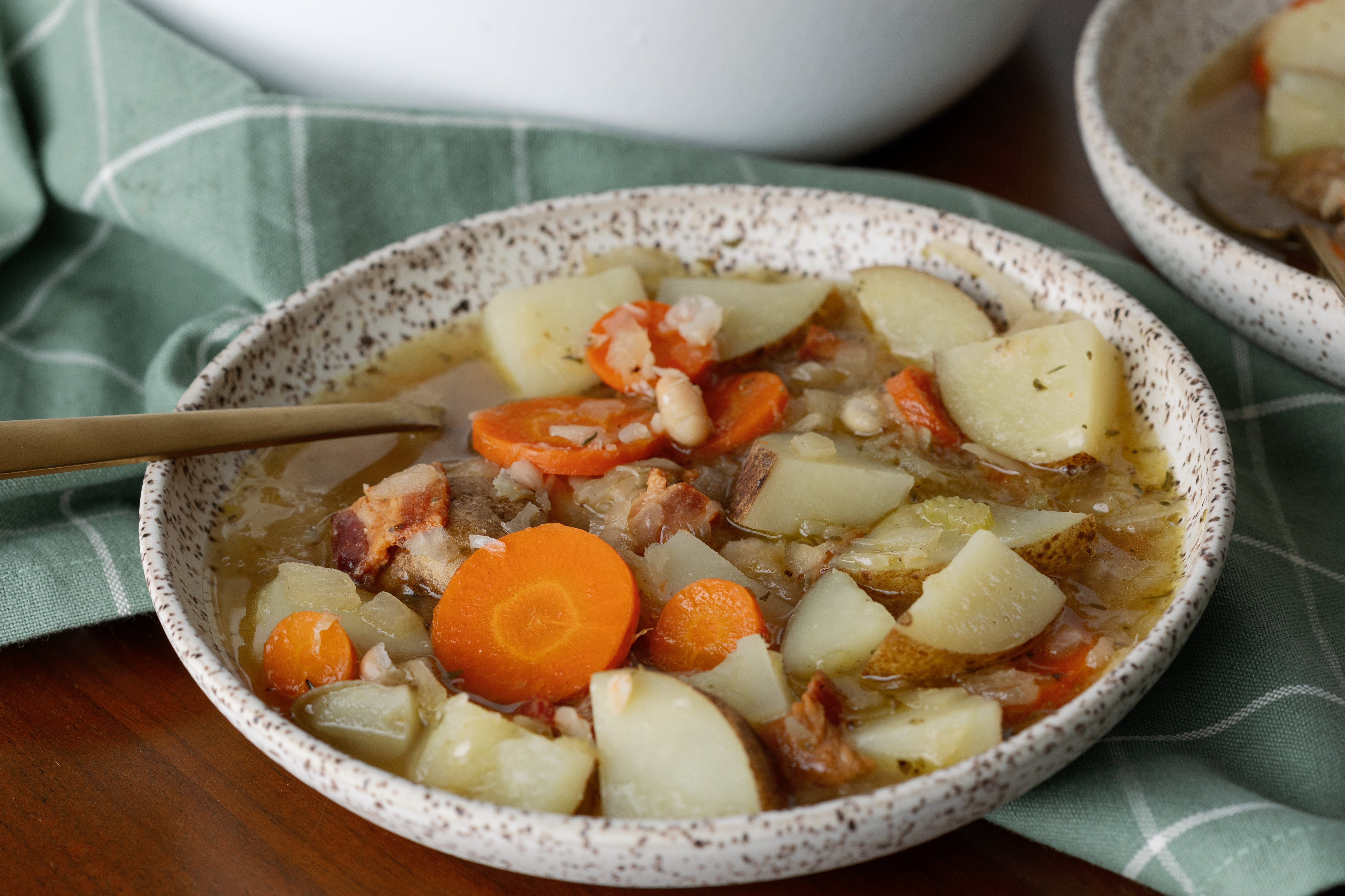 Step 9 -Serve the soup in bowls topped with the remaining bacon, adding the bread on the side.