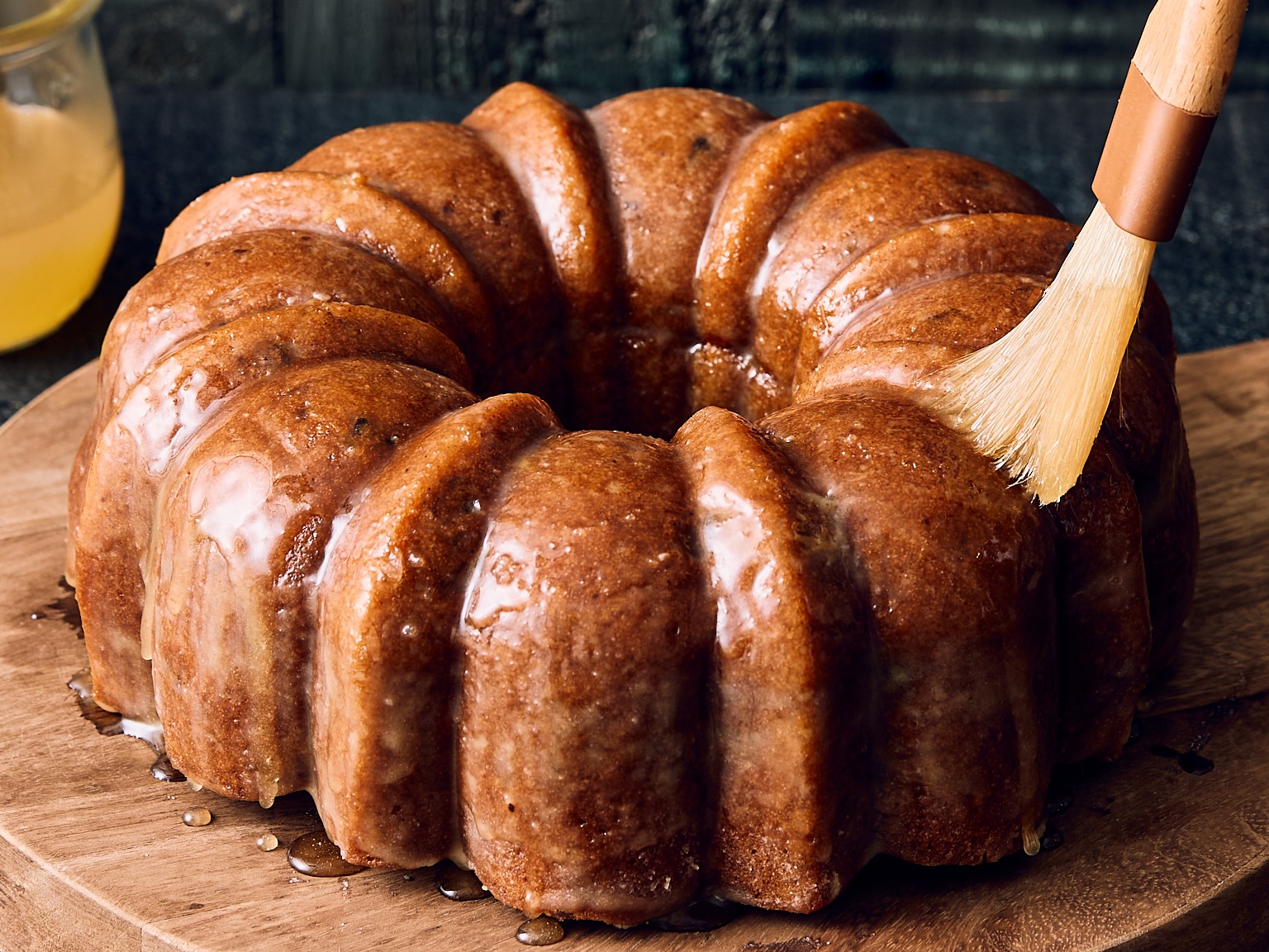 Step 16 -The following day, reheat the remaining whiskey glaze and evenly brush it over the cake. Let it cool completely.